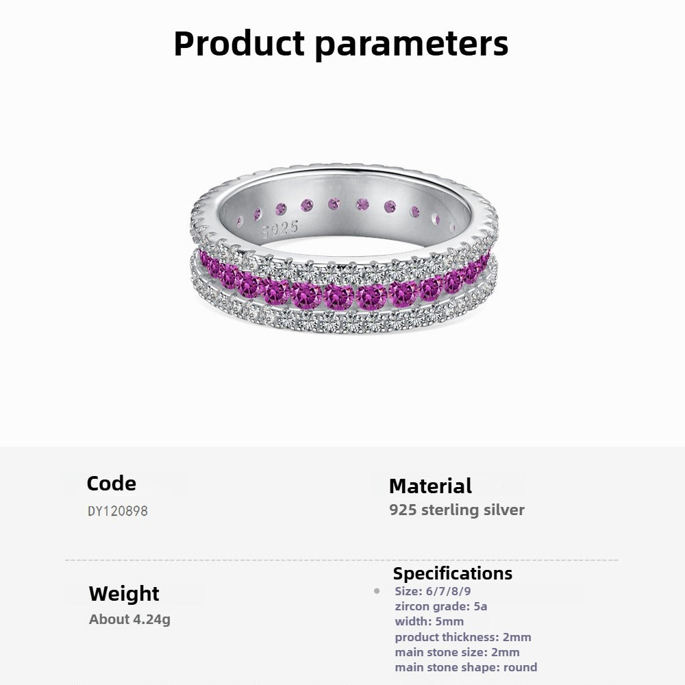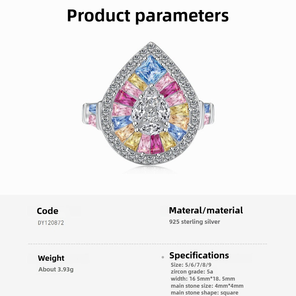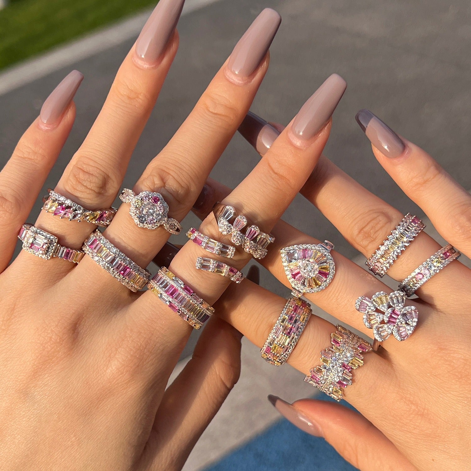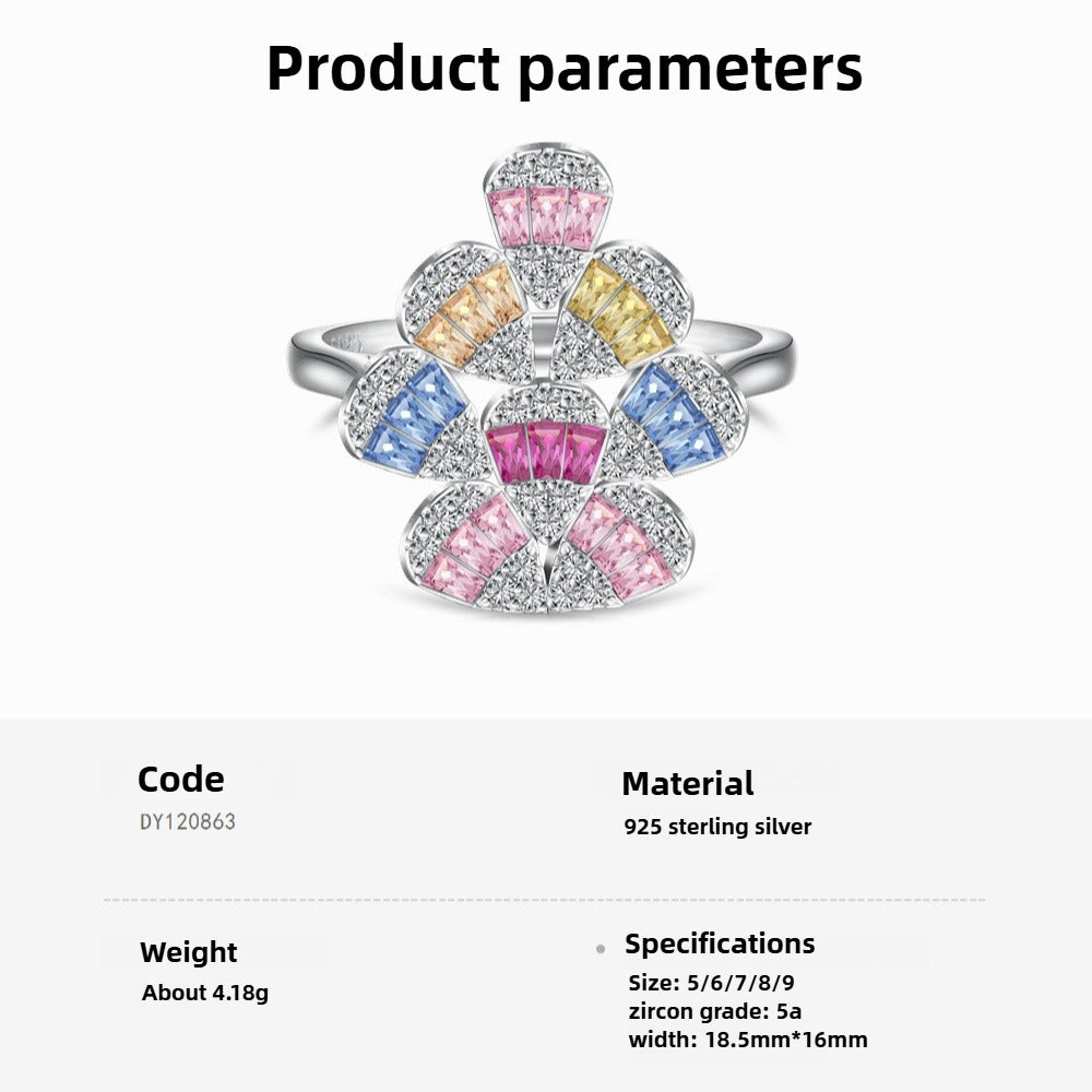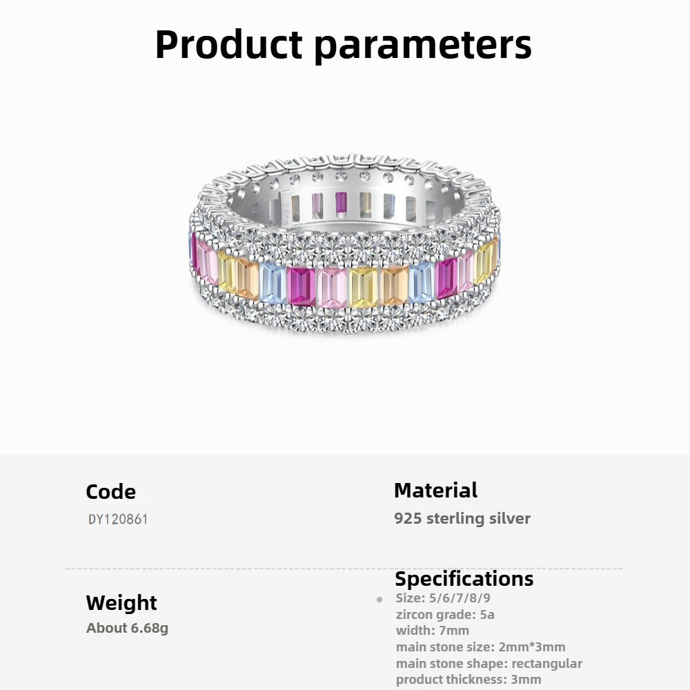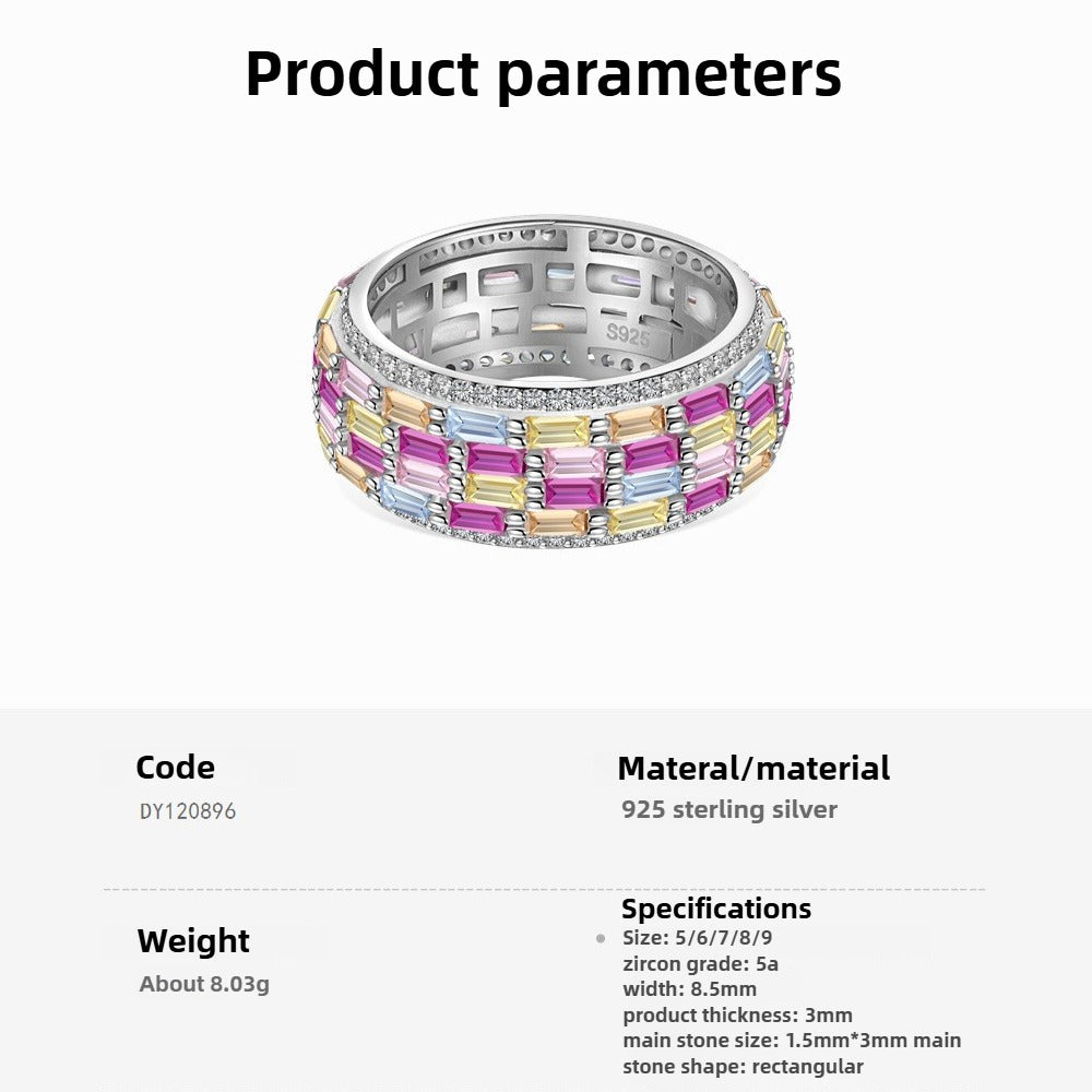 This series of rings features 925 sterling silver bands in a variety of unique designs, each inlaid with high-quality colorful cubic zirconia stones. Inspired by the dopamine dressing trend, the rings are crafted to boost mood and style — whether you're layering for a statement or wearing solo for a minimalist vibe.