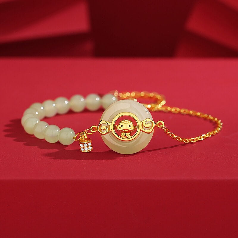 • Symbol of Prosperity: This bracelet combines the energies of Hetian Jade, the Snake, and the Peace Buckle, making it an ideal piece for those looking to attract good fortune and abundance during the Snake Year. 🍀🐍