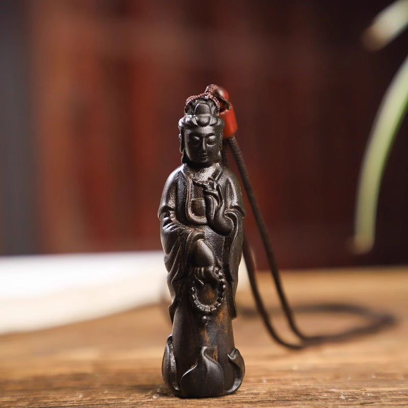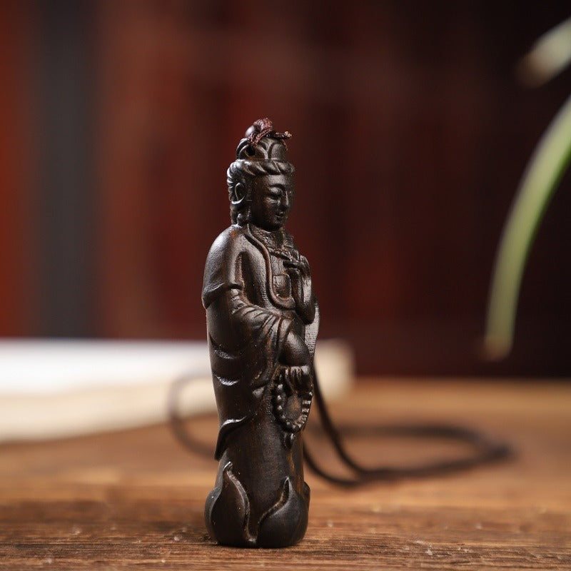 Zen Healing Agarwood Avalokitesvara Amulet Wealth Necklace Pendant