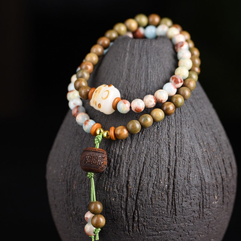 Zen Healing Green Sandalwood & Shoushan Stone Wealth Bracelet