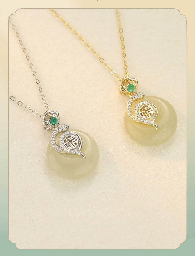 Zen Healing Jade 925 Silver Year of the snake Luck Necklace