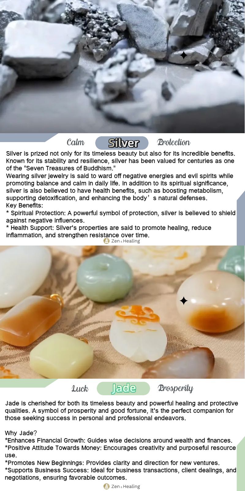 Healing Benefits: Jade is known for its ability to promote inner peace, clarity, and emotional healing.