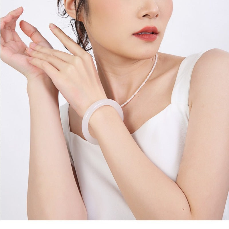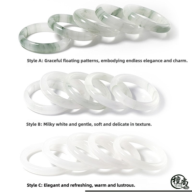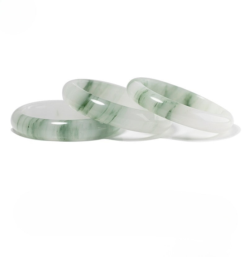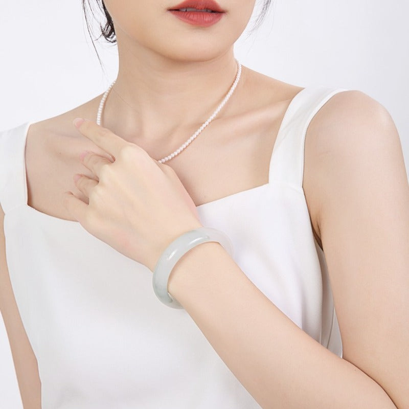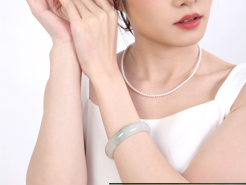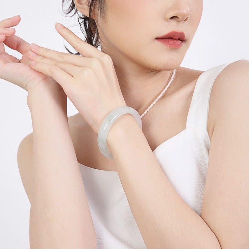 • Gently slide the bangle onto your wrist; jade is naturally sturdy but should be handled with care.
