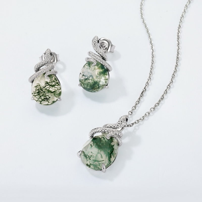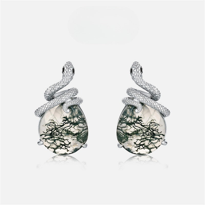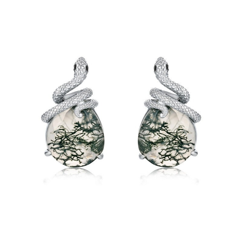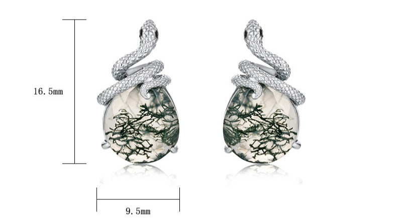 Zen Healing Moss Agate 925 Silver Year of the snake Stud Earrings