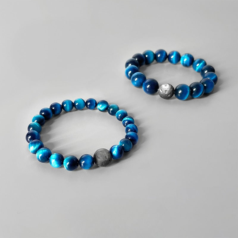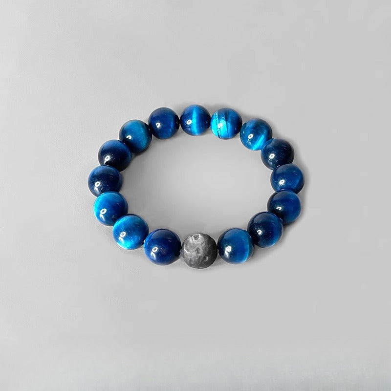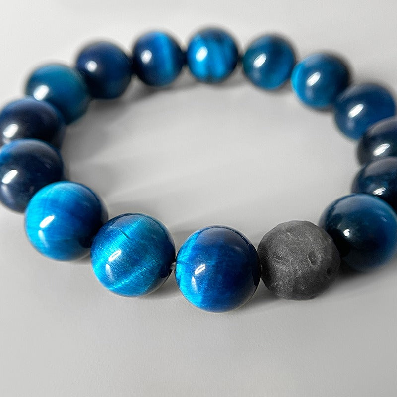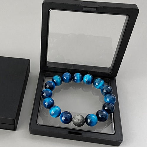 Zen Healing Natural Blue Tiger Eye Silver Obsidian Confidence Energy Bracelet