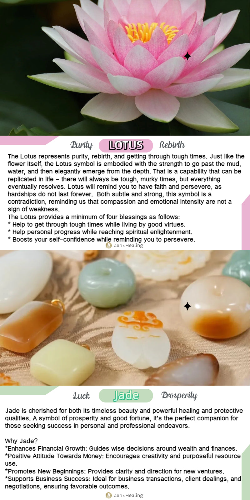 • Lotus flower symbolizes rebirth, harmony & inner peace.