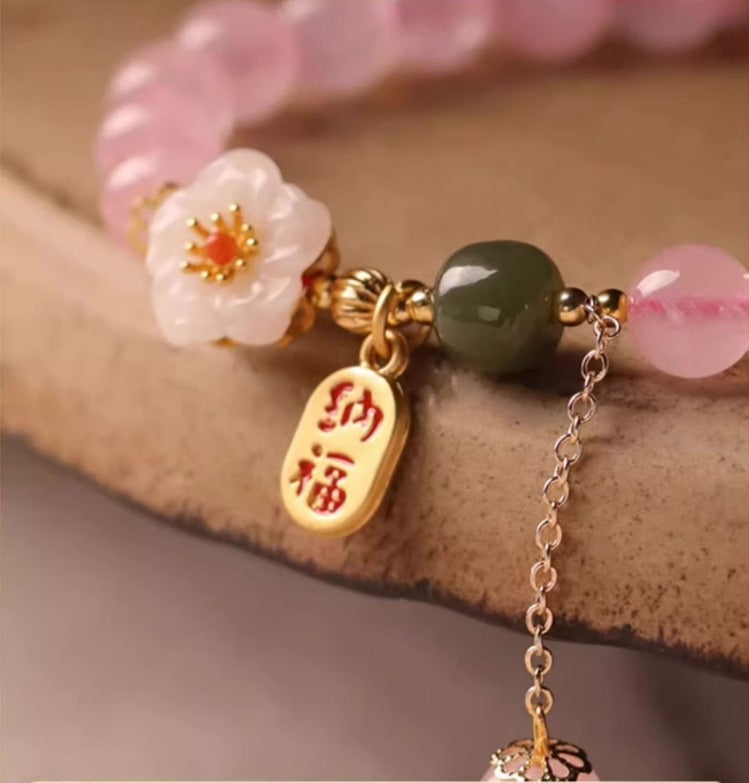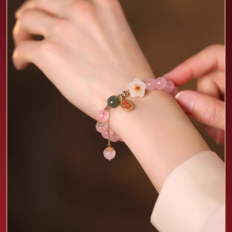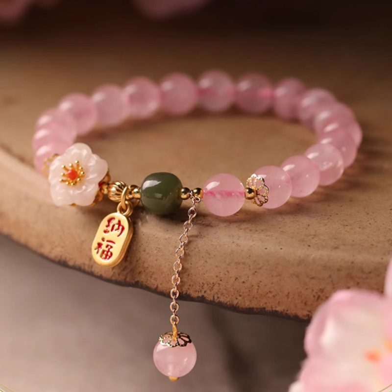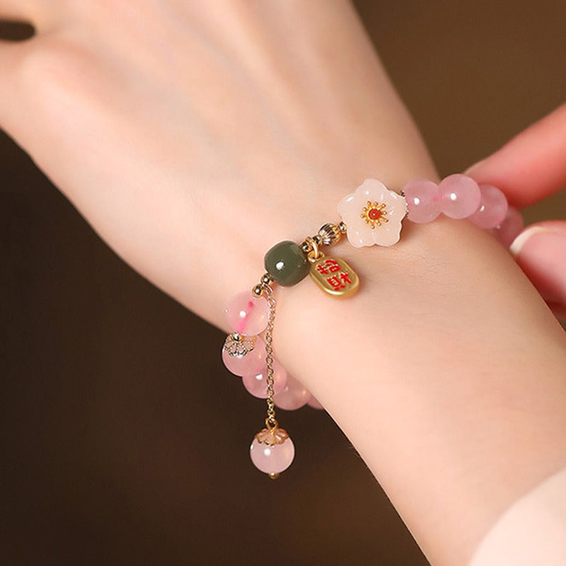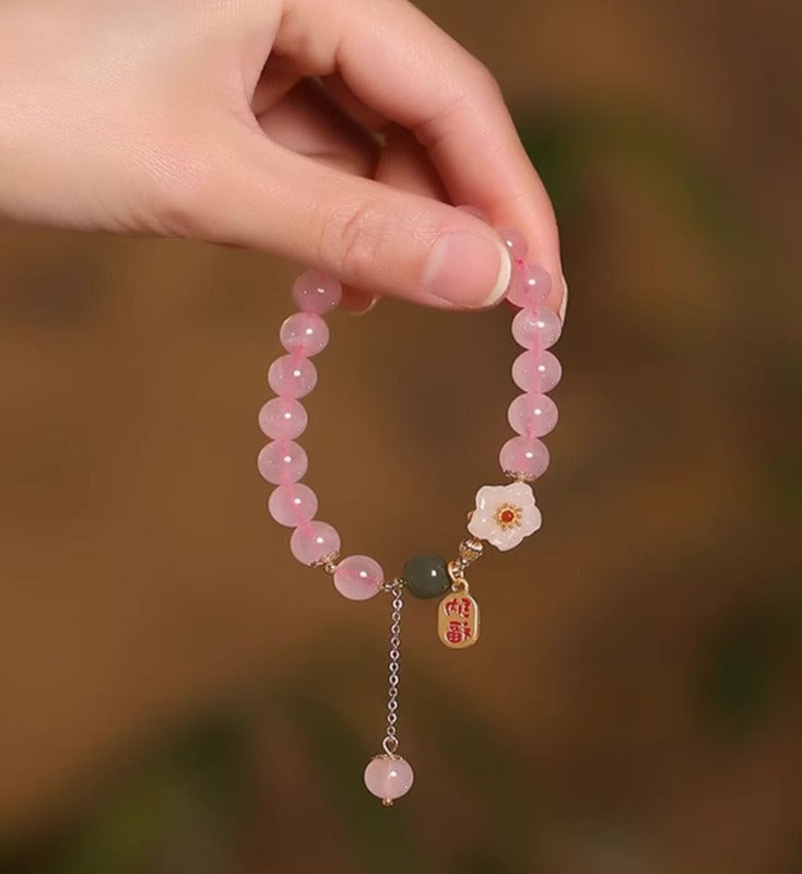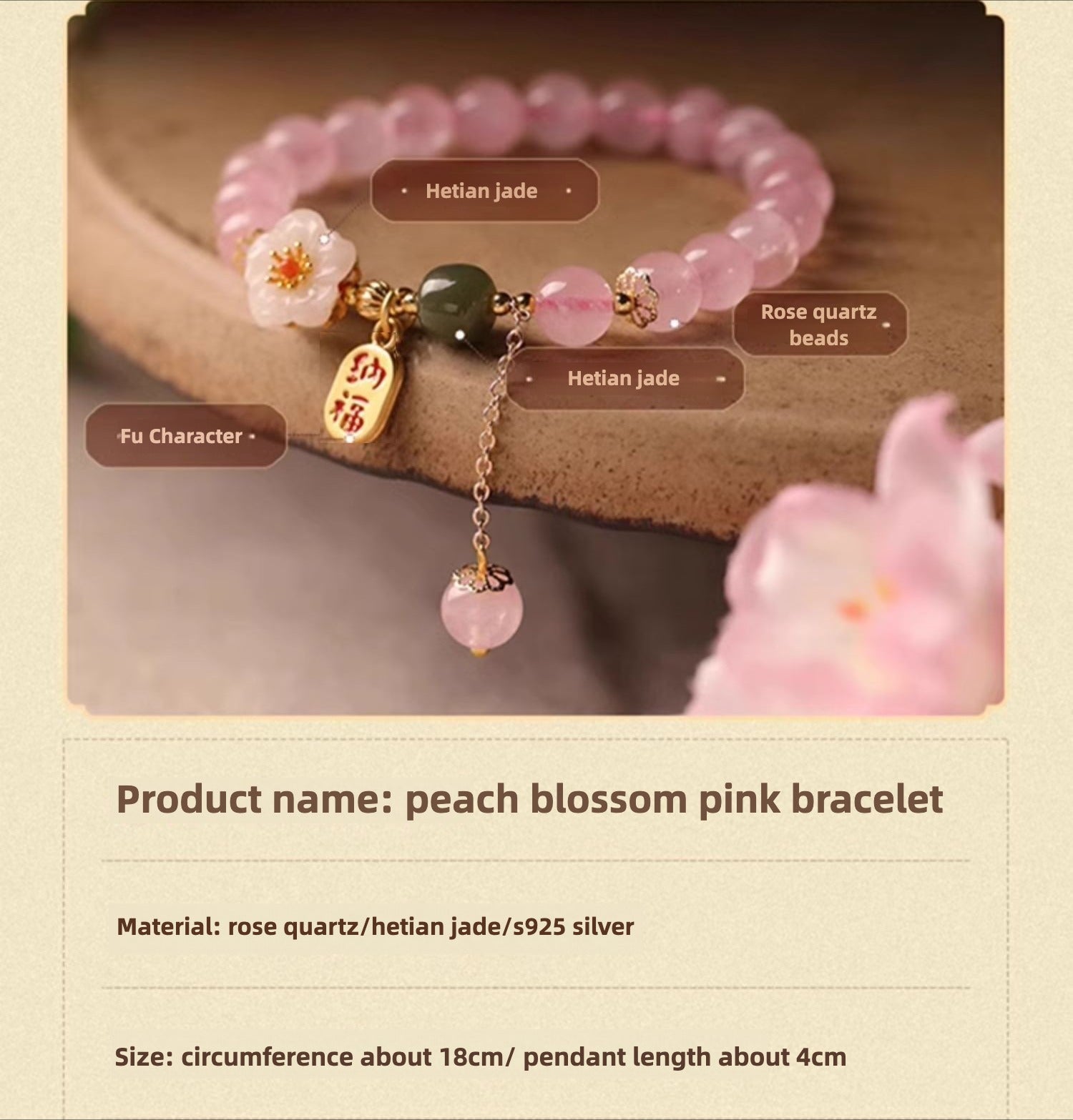 Zen Healing Rose Quartz Jade Peach Blossom Love Bracelet