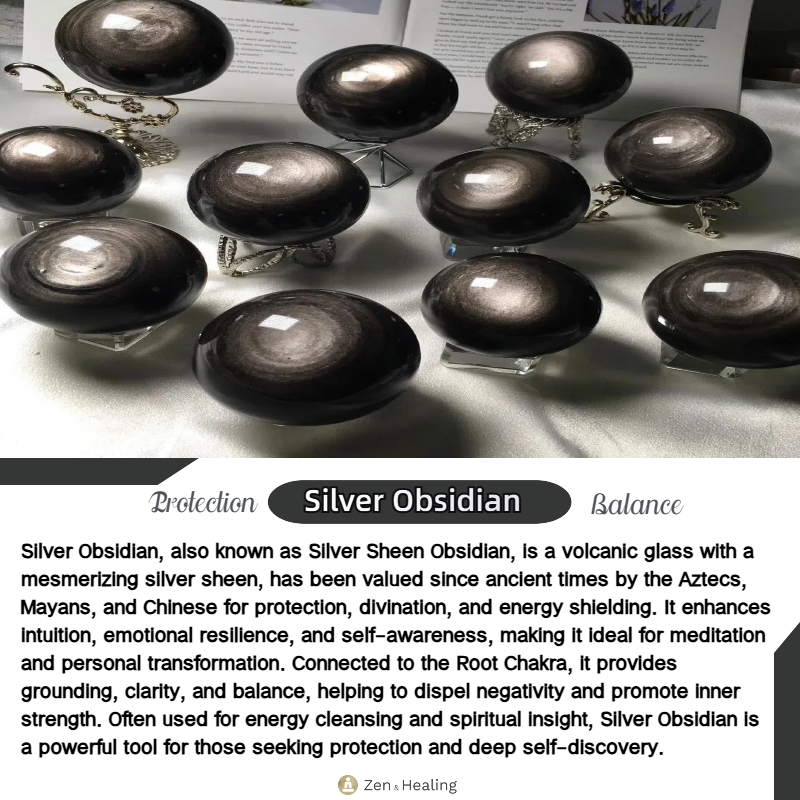 🌑 Silver Obsidian Protection – Absorbs negativity, enhances mental clarity, and provides grounding energy.