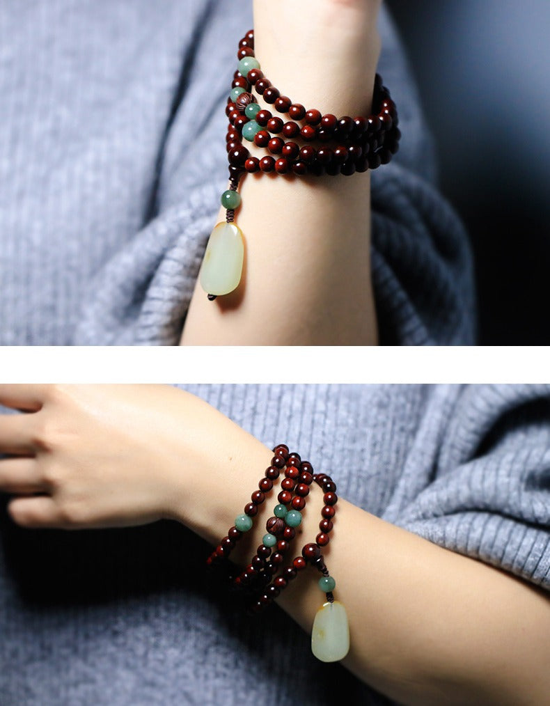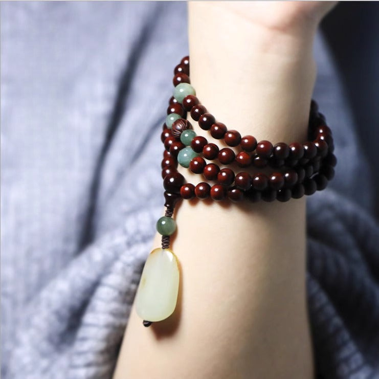 Zen Healing Small Leaf Red Sandalwood Jaed 108 Mala Beads Meditation Bracelet