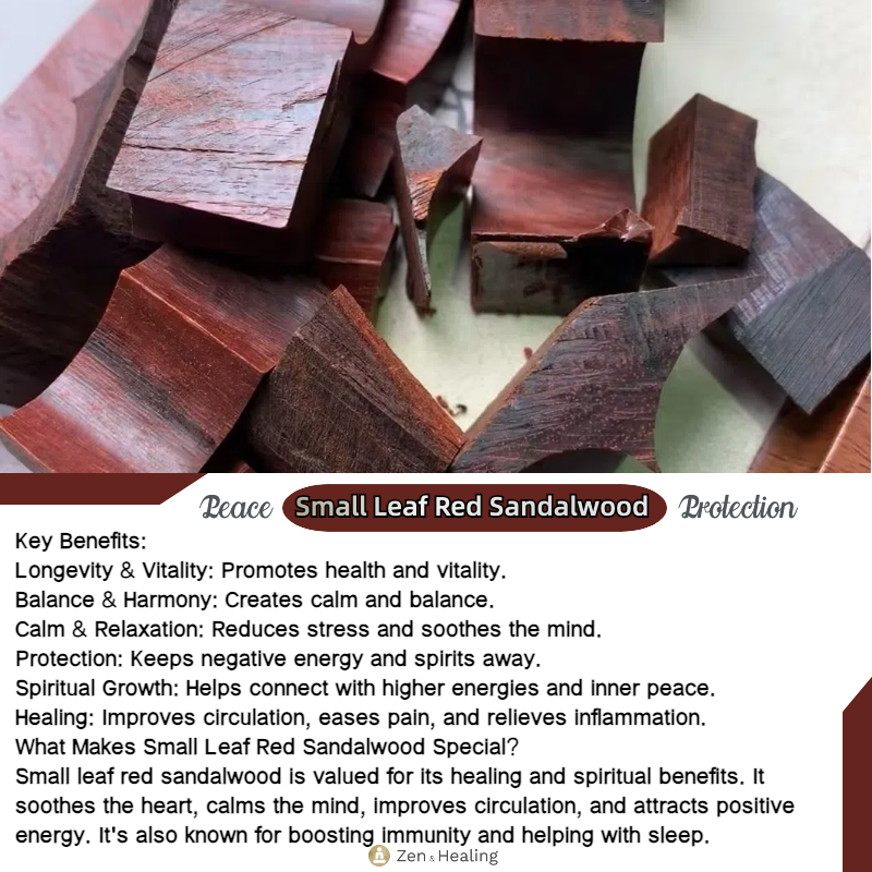 Small Leaf Red Sandalwood Beads: Each bead is carefully chosen for its rich color and smooth texture, offering a calming and grounding energy.