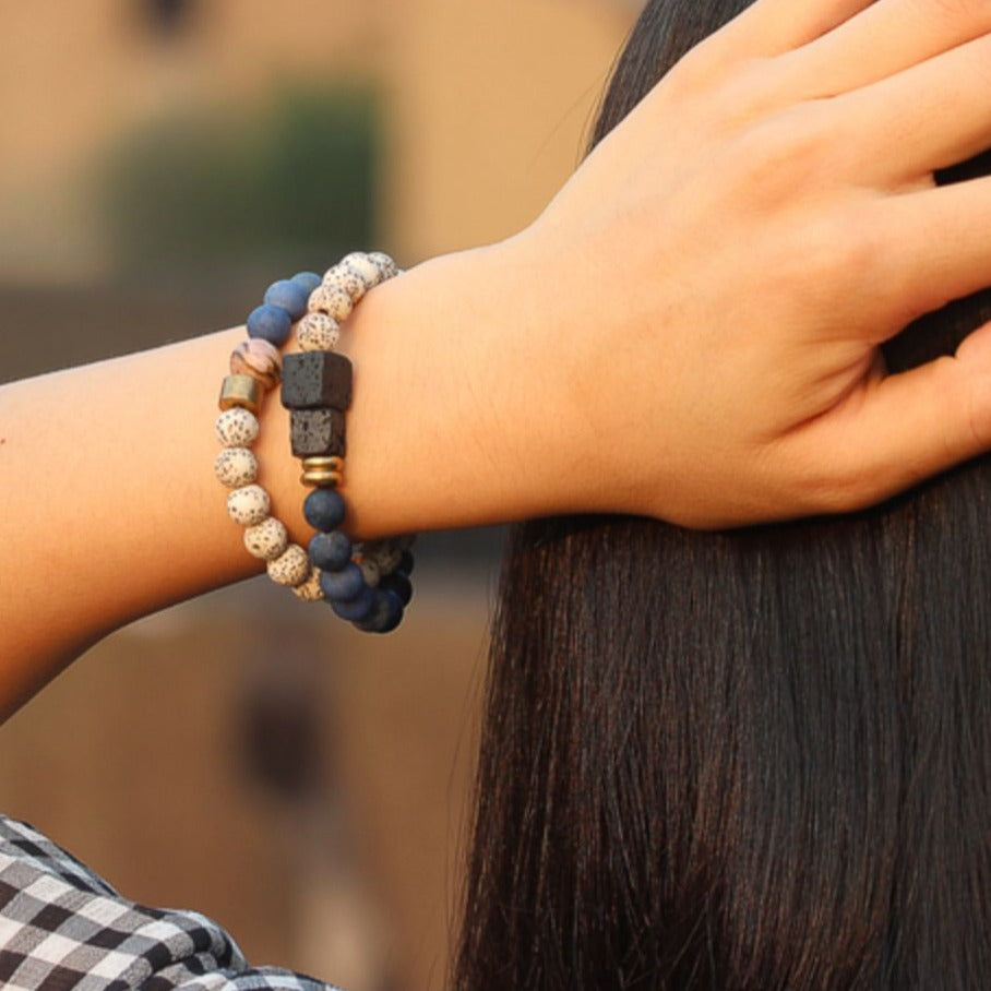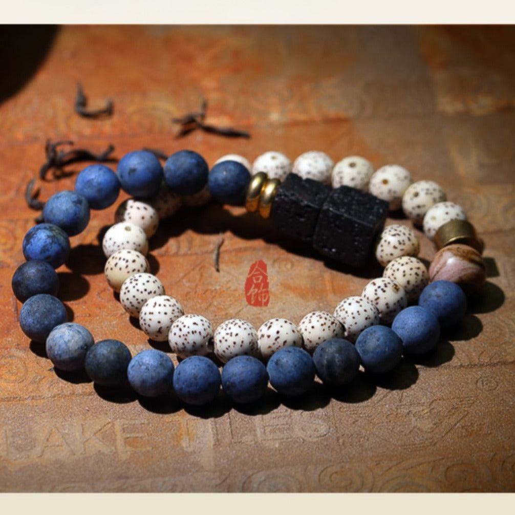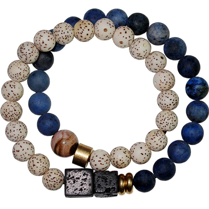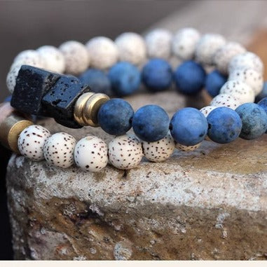 Zen Healing Star Moon Bodhi Sodalite Lava Rock Stone Strength Double Wrap Bracelet