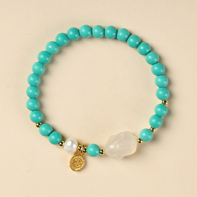 Zen Healing Turquoise White Jade Rabbit Lucky Bracelet