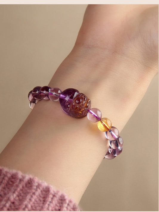 Feng Shui Amethyst Citrine Pixiu Fortune Wealth Bracelet