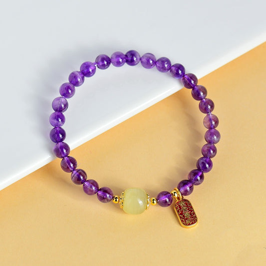 Zen Healing Natural Amethyst Crystal Amulet Charm Positive Bracelet