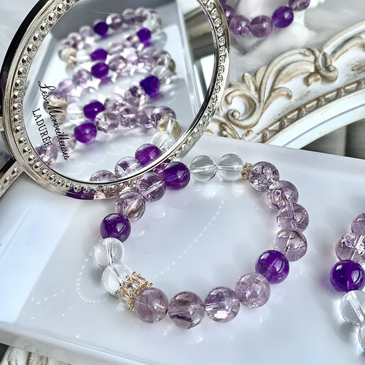 Natural Amethyst Clear Quartz Designs Fashion Bracelet-Calm•Wise•Focused