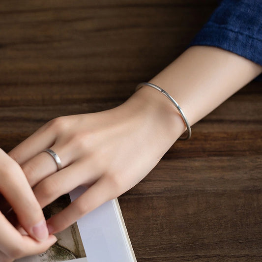 Zen Healing S925 Silver Peace Luck Cuff Bracelet Bangle