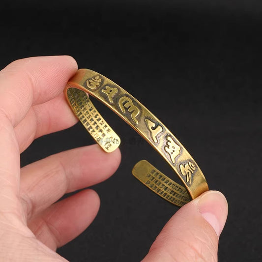 Zen Healing Six True Words 'om Mani Padme Hum' Heart Sutra Pure Copper Brass Self Care Healing Bracelet