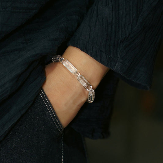 Zen Healing Square Clear Quartz Brass Copper Calm Bracelet