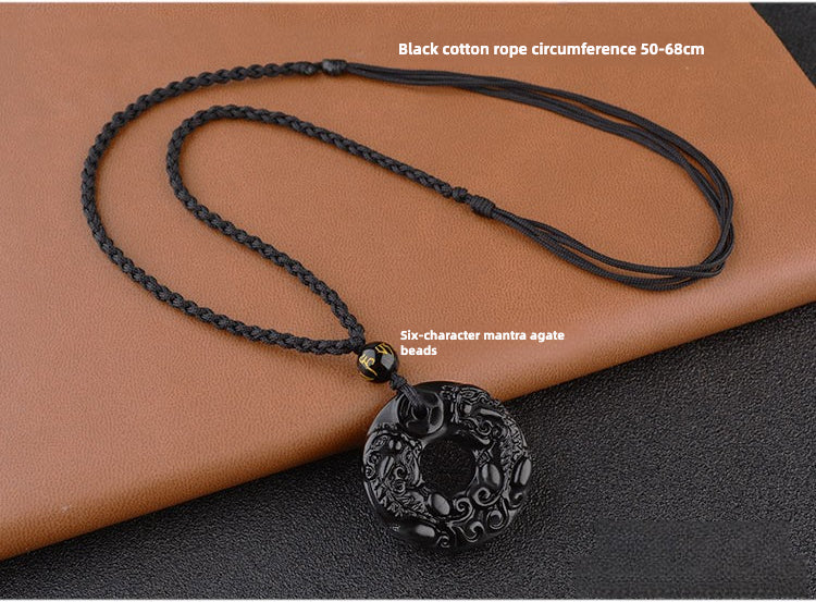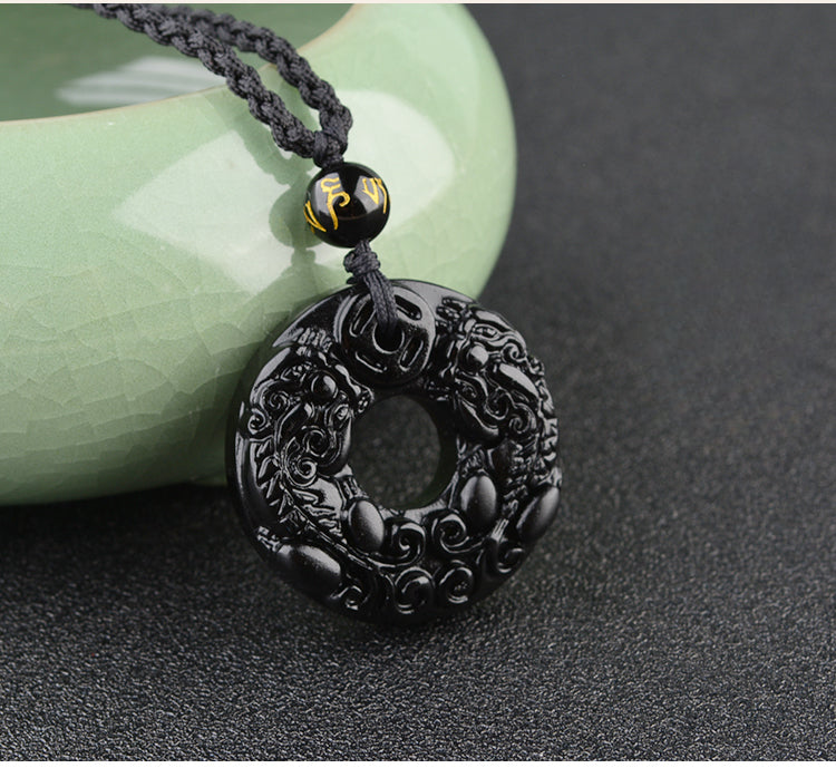 Obsidian Fortune Strength Pixiu Pendant Necklace Crystal