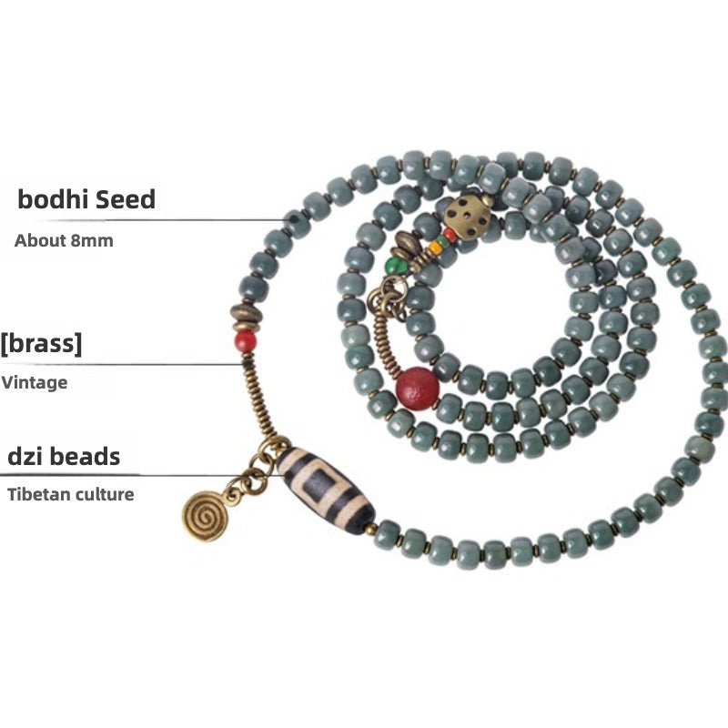 Material: 108 Bodhi Seed Beads, Dzi Beads,Copper