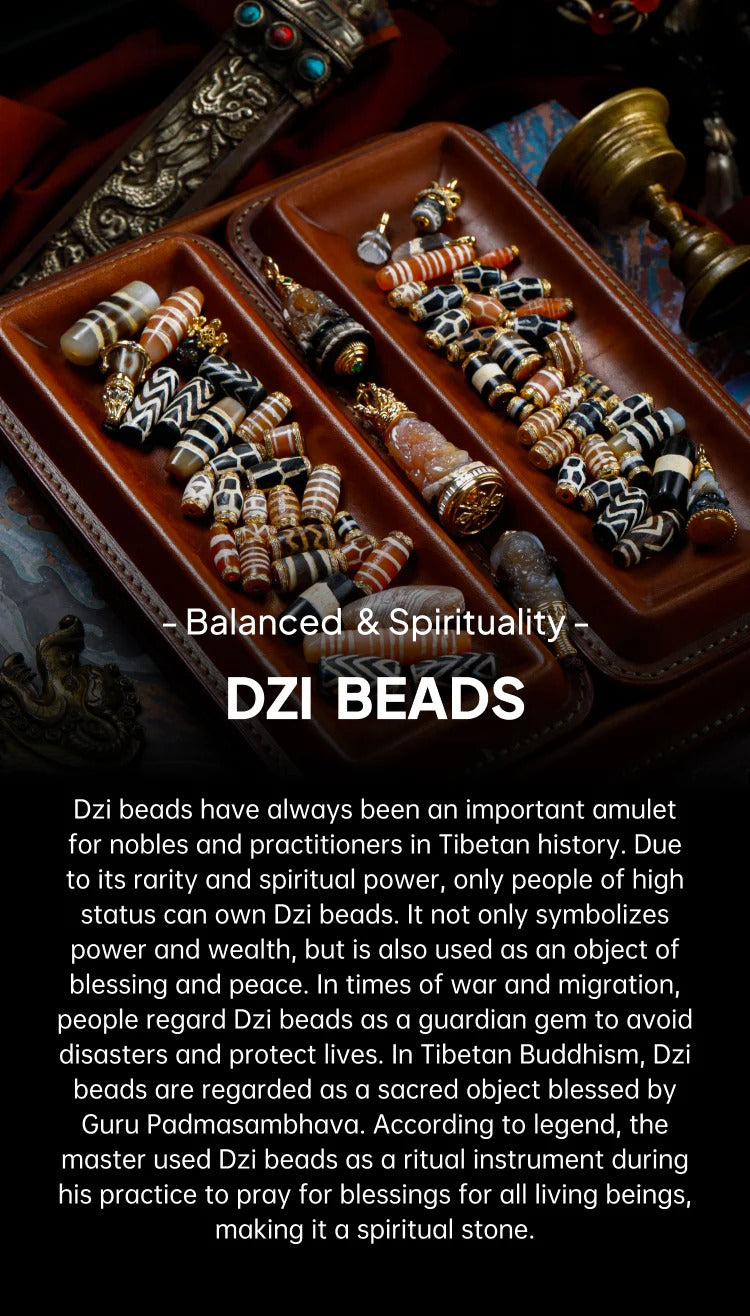 The Dzi Bead  is a powerful and revered symbol in Tibetan culture, often considered a treasure and protective amulet. This unique bead, with its distinctive nine-eye design, is believed to attract divine protection, bring blessings, and enhance well-being. The Dzi Bead holds significant meaning in Tibetan tradition, representing the nine planets and embodying the cosmic energies of the universe.