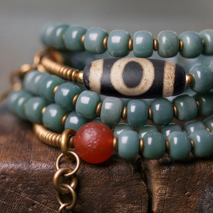 Protection and Blessings: Tibetan culture holds the Dzi Bead in high regard for its protective qualities. It is believed to shield the wearer from harmful influences, warding off negative spirits and energies while invoking the blessings of deities, ancestors, and spiritual guides.