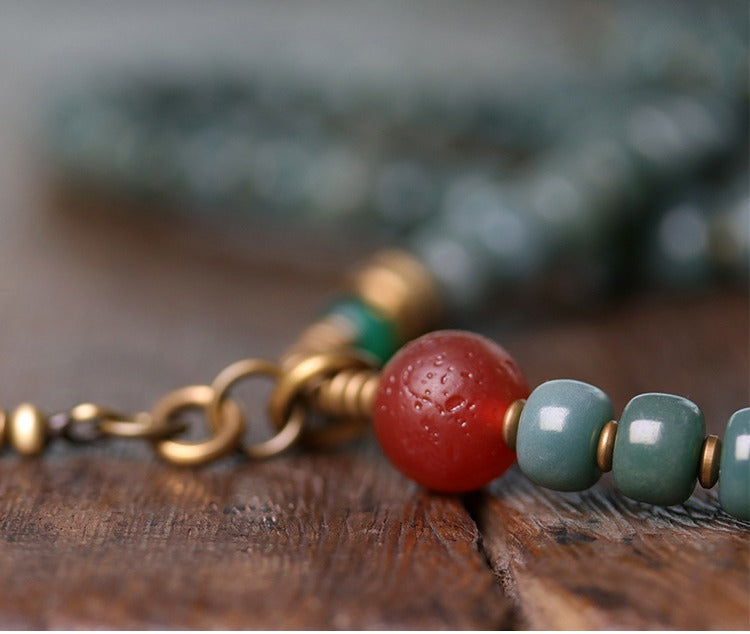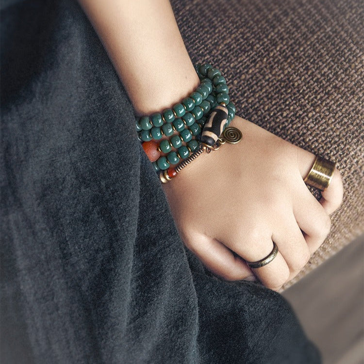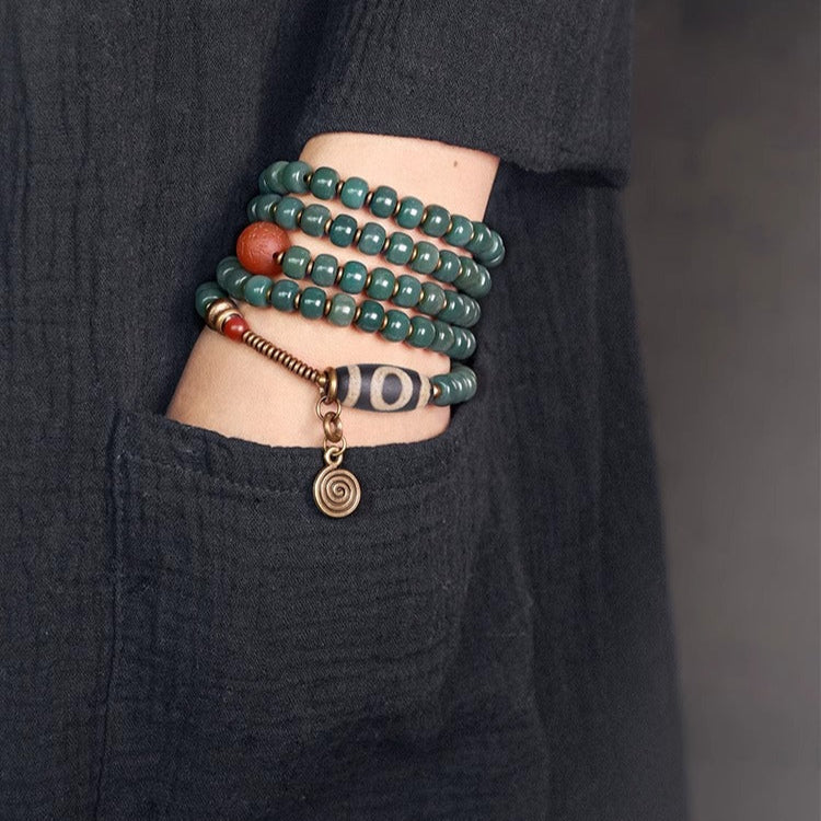 Features: Spiritual power of 108 beads, Bodhi seed for enlightenment, Dzi beads for protection and healing