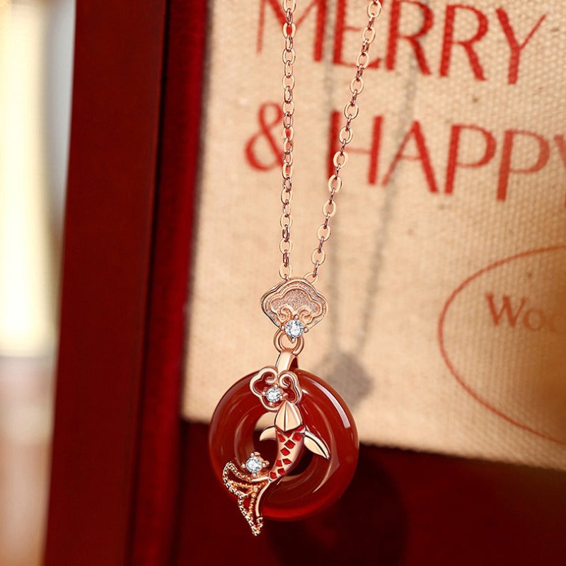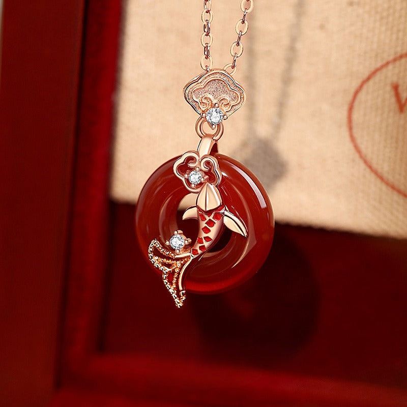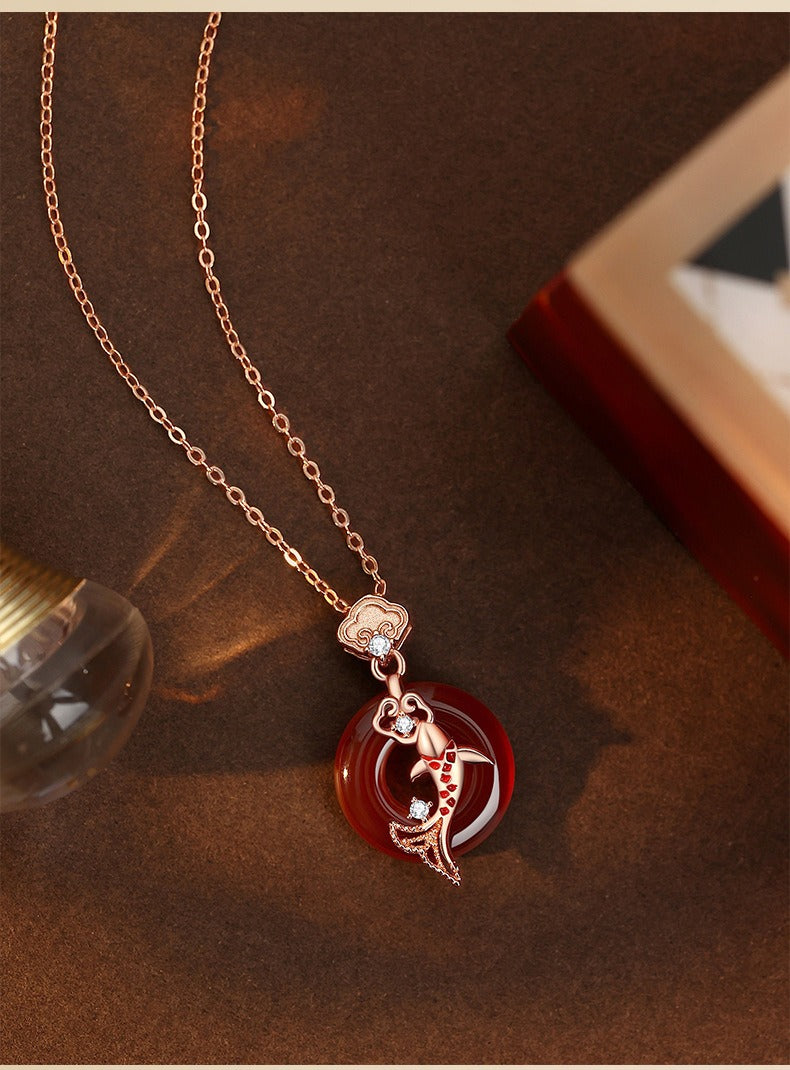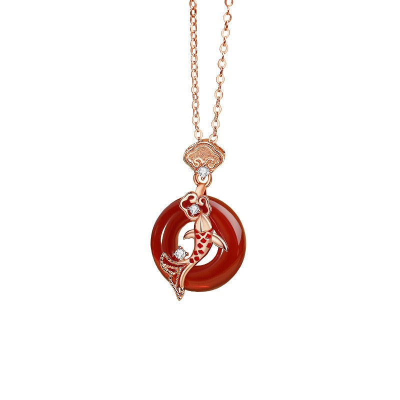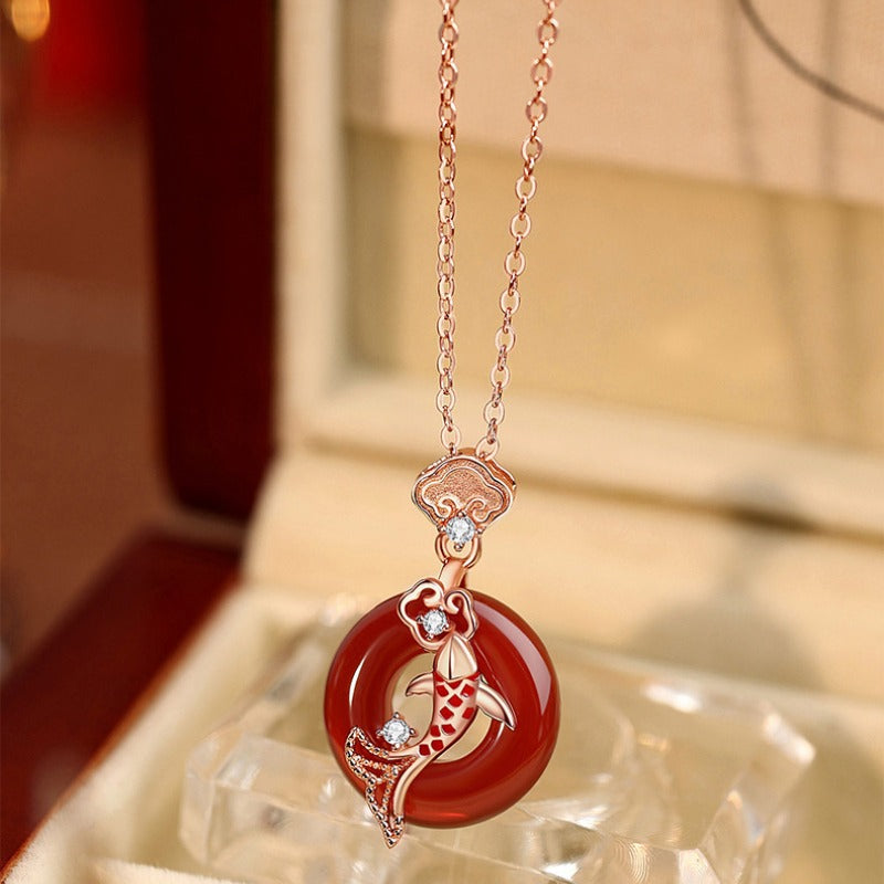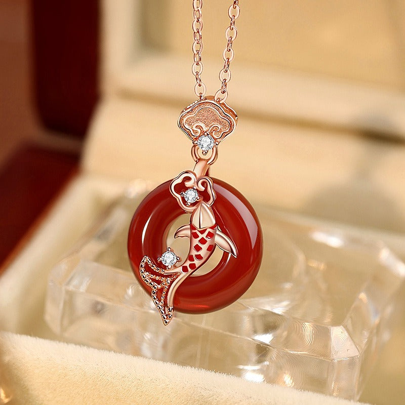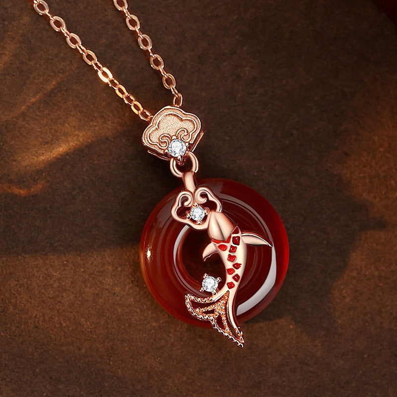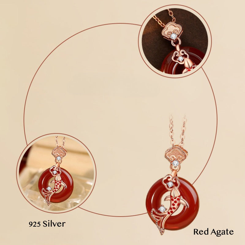 Zen Healing 925 Silver Agate Koi Fish Peace Necklace Pendant