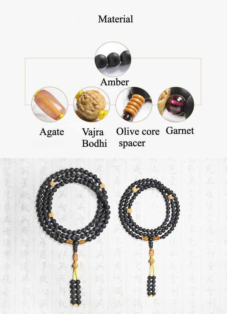Zen Healing Amber 108 Agate Mala Beads Healing Bracelet