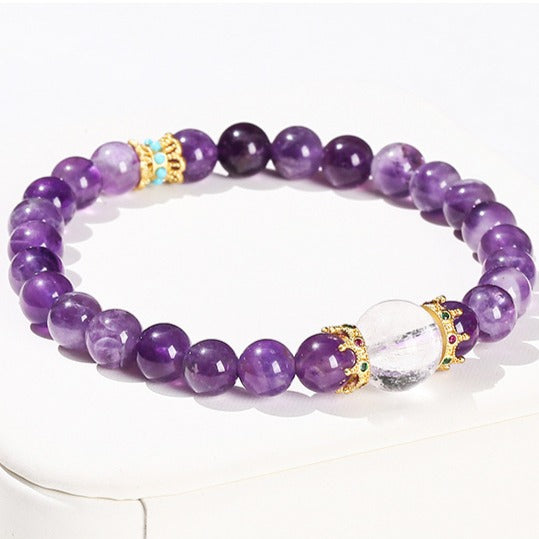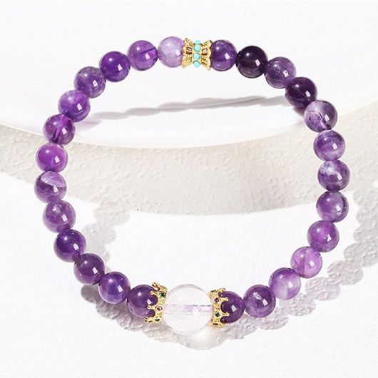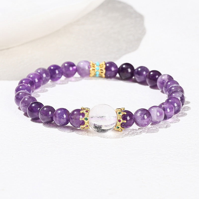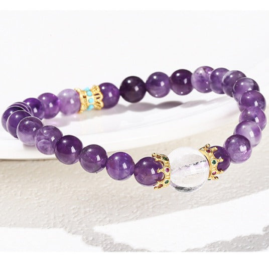 Zen Healing Amethyst Crystal Clear Quartz Prosperity Bracelet