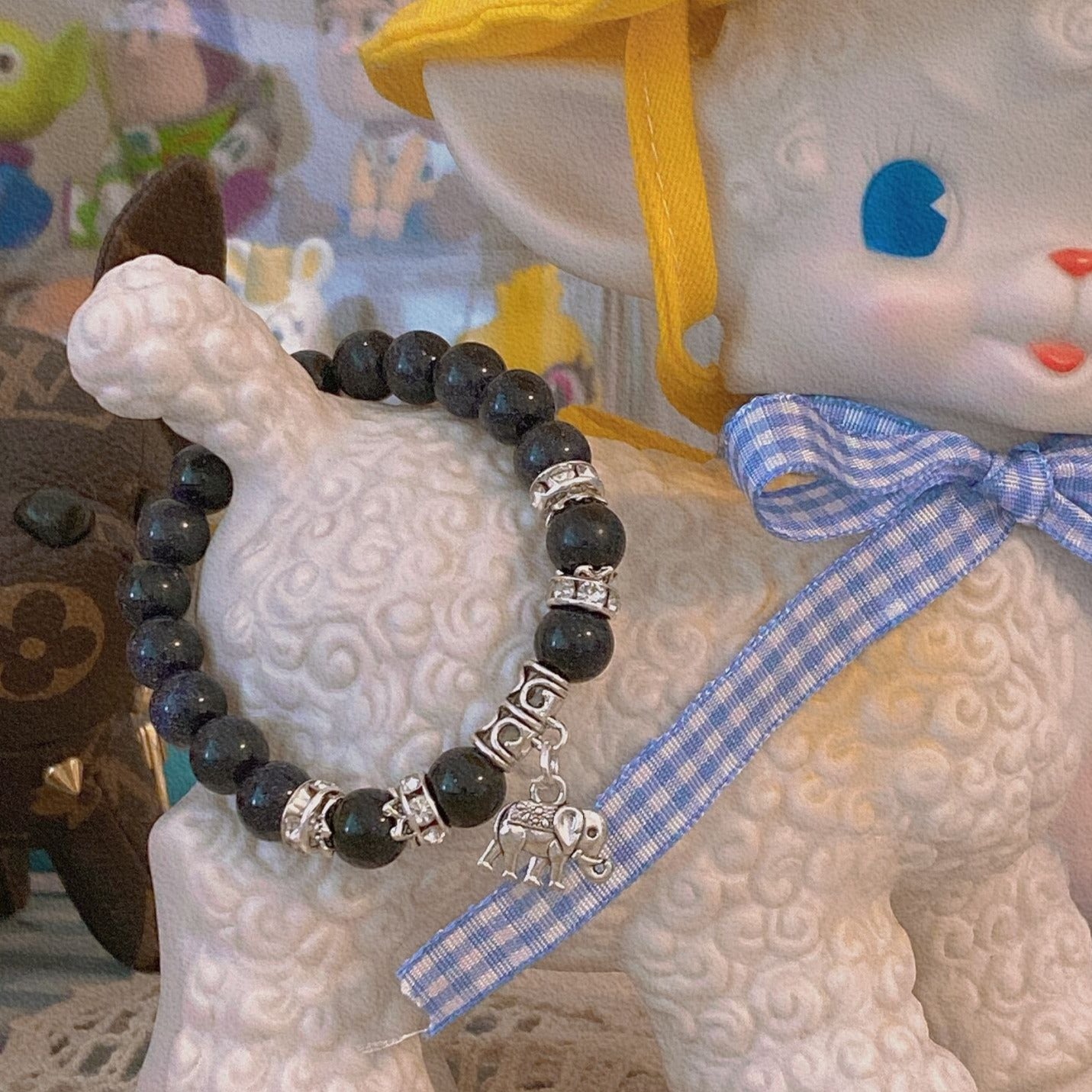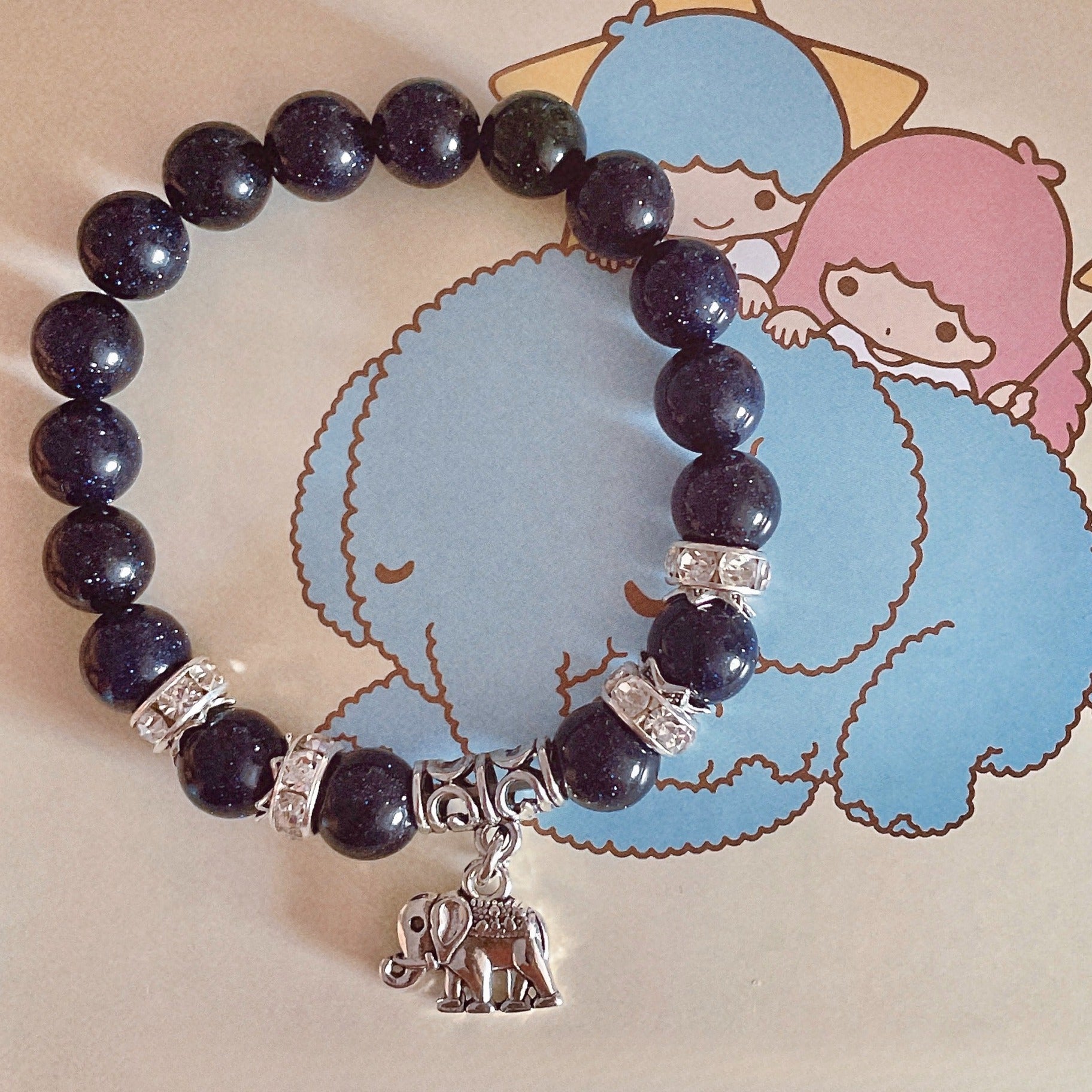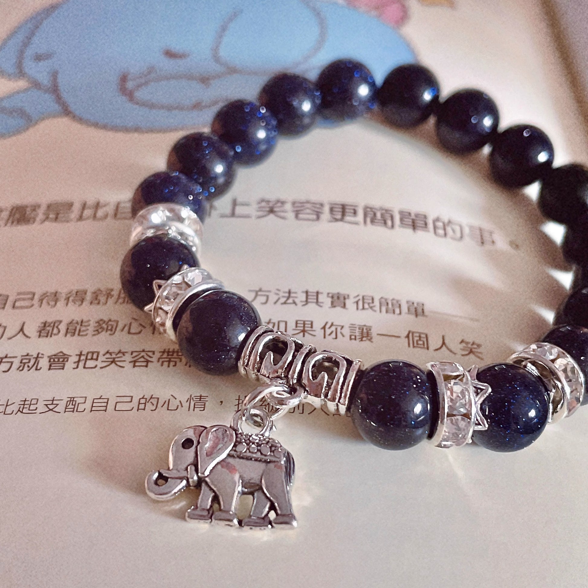 Zen Healing Blue Sandstone Elephant Pendant Wisdom Bracelet
