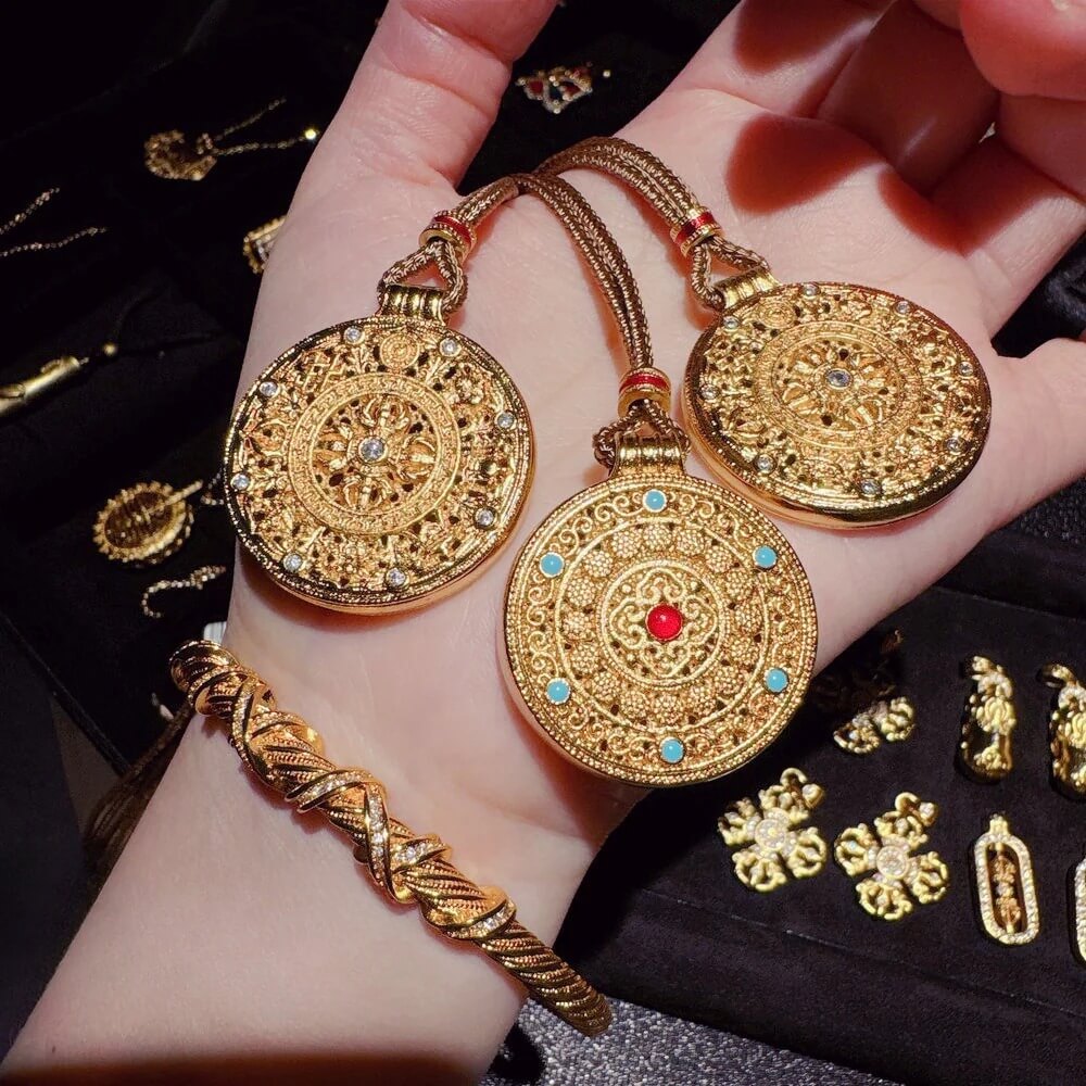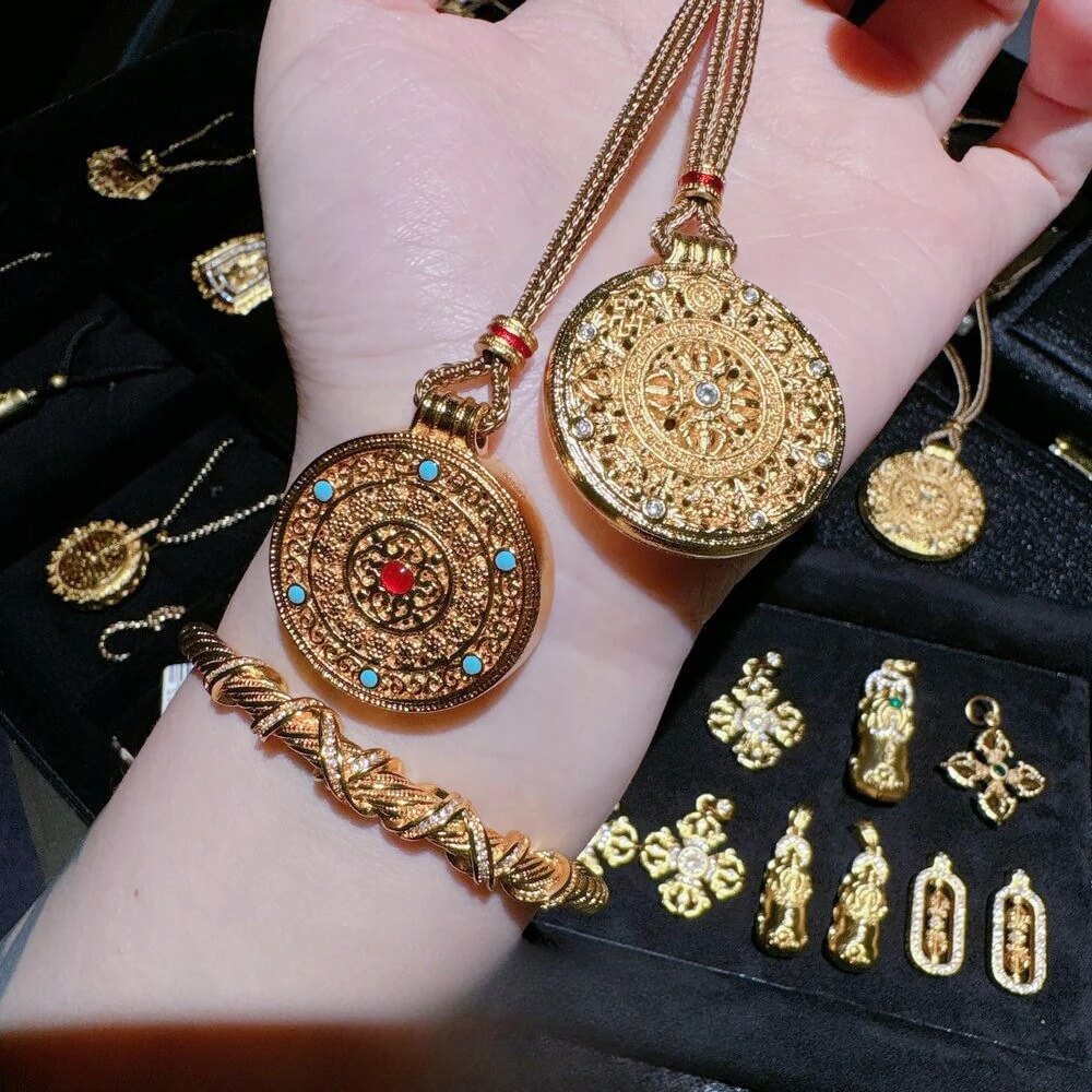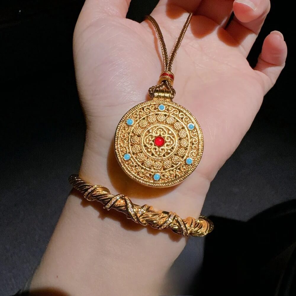 This meticulously crafted pendant features a golden gourd with an intricate lotus flower window design, blending ancient cultural symbols with modern elegance. The gourd is a powerful symbol of health, prosperity, and protection, while the lotus window design embodies spiritual purity and completeness. Wear this necklace as a meaningful accessory or a reminder of life's blessings and the spiritual journey towards balance and abundance. 🌸💛