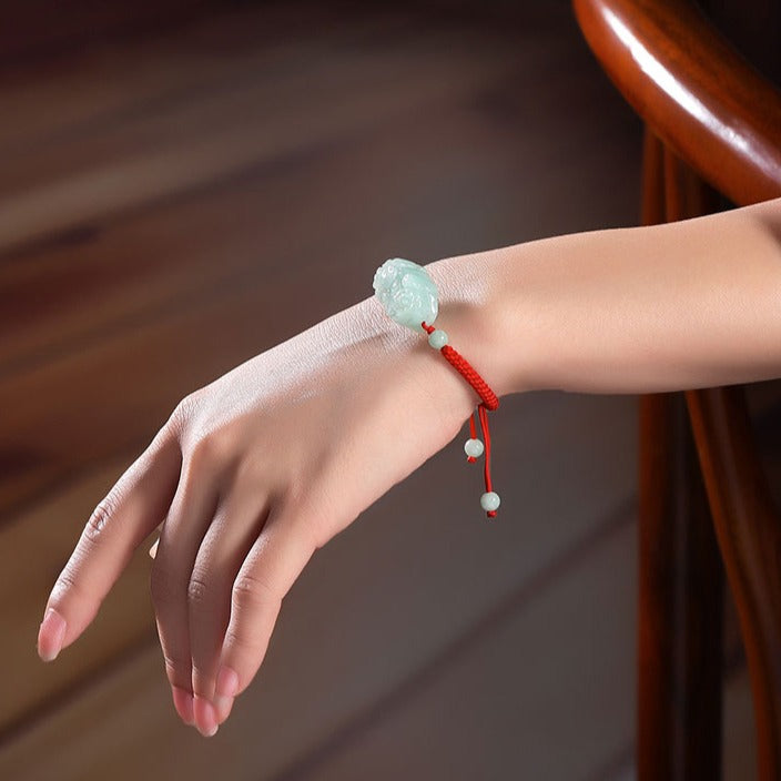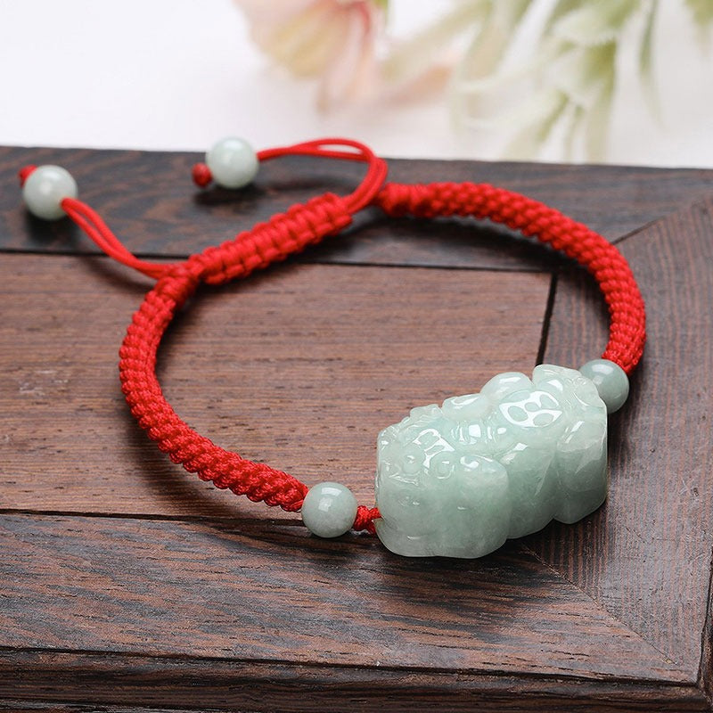 Zen Healing Natural Jade PiXiu Wealth Luck Braided Feng Shui Bracelet