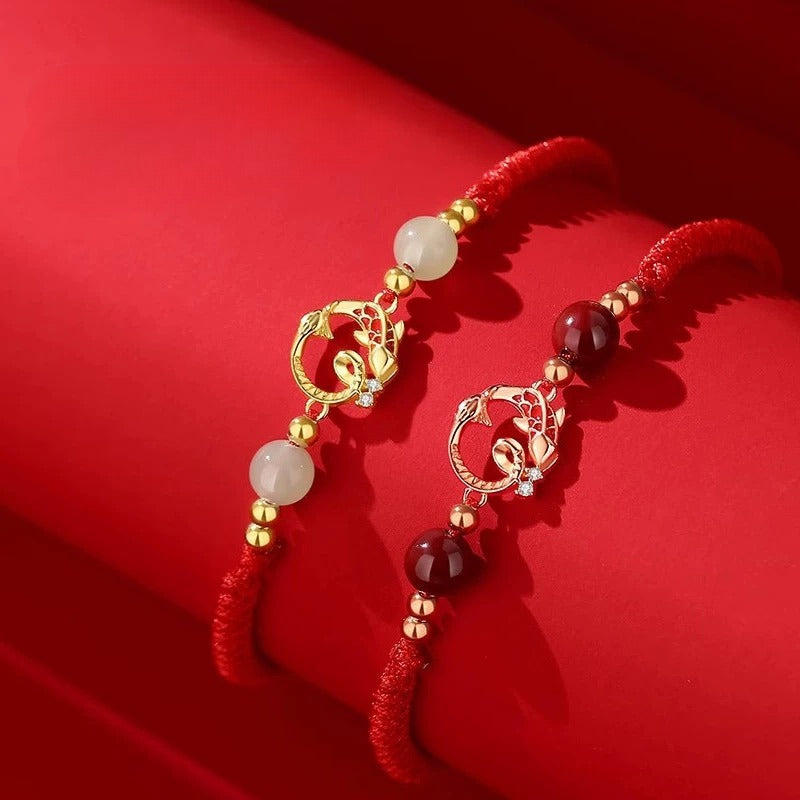 Zen Healing S925 Silver Koi Fish Luck Red String Bracelet