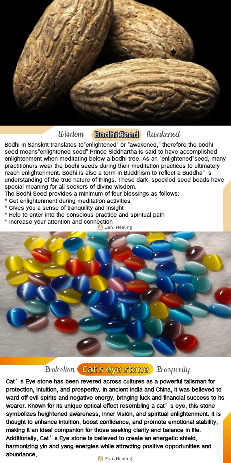 The Zen Healing Star Moon Bodhi Cat's Eye Multi-layered Wrap Protection Bracelet blends the celestial energy of Star Moon Bodhi seeds with the mystical glow of Cat’s Eye stone. This powerful combination is designed to enhance spiritual awareness, ward off negativity, and attract abundance. The multi-layered wrap design amplifies its protective energy, making it a perfect choice for those seeking inner peace, balance, and a deep connection to the universe.