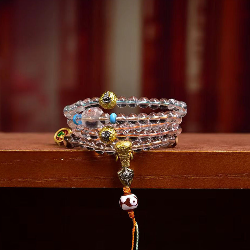This Tibetan Natural White Quartz Agate Dzi Bead Meditation Healing Multilayer Mala is designed to enhance clarity, balance energy, and support mindfulness. Perfect for meditation, daily wear, or as a spiritual gift.