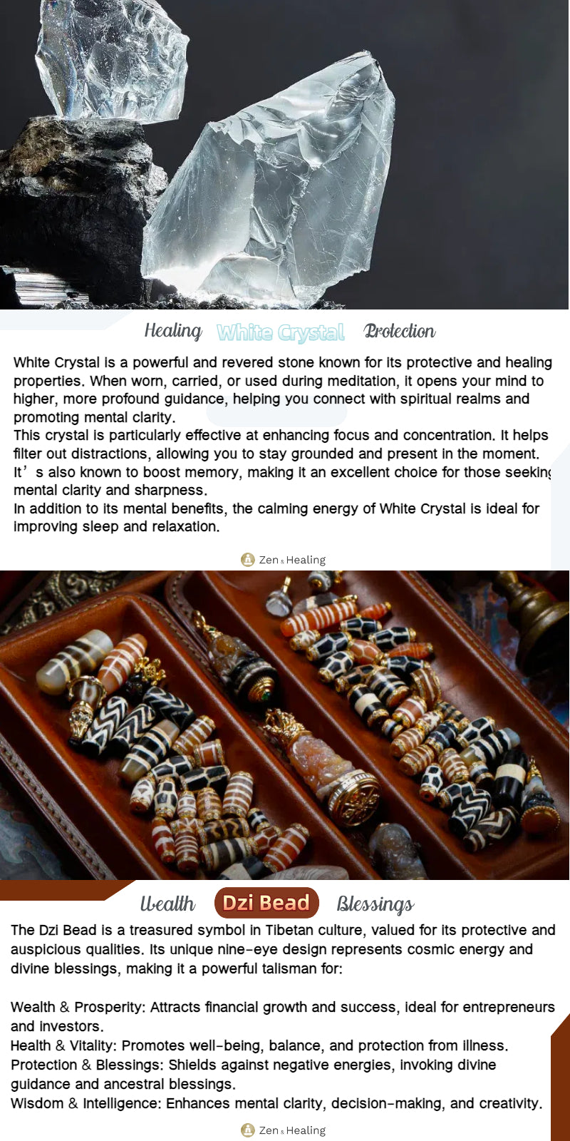 🧘 Agate Dzi Beads: Traditionally used in Tibetan culture, these beads are believed to bring wisdom, prosperity, and spiritual protection.
