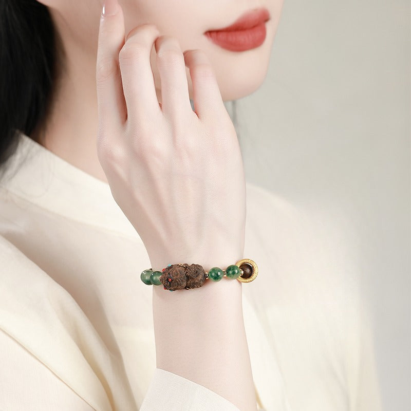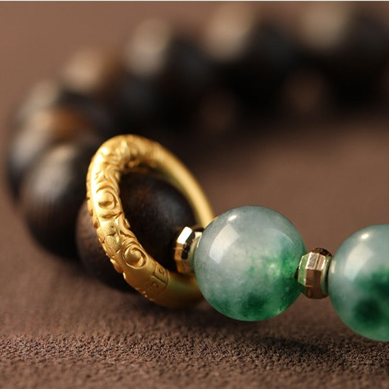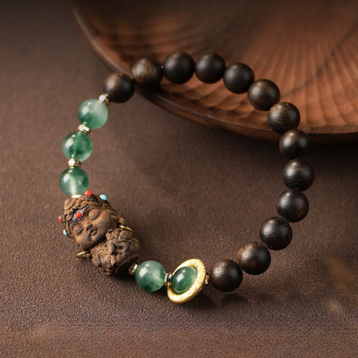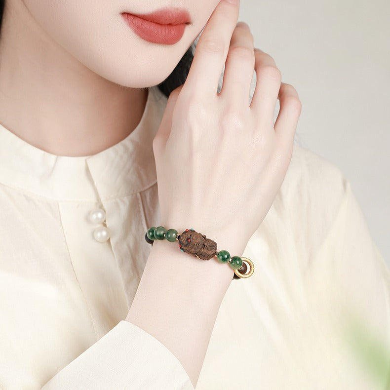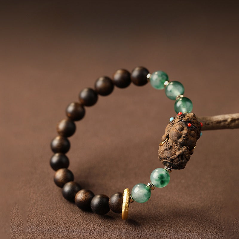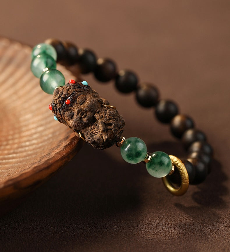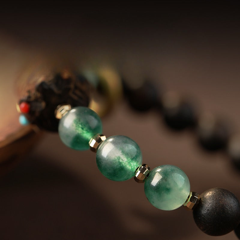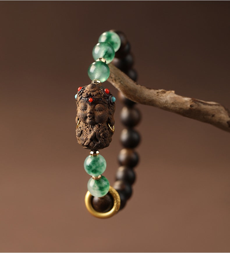 Zen Healing Tibetan Nha Trang Agarwood Ocean Grass Agate Green Tara Zhakiram Peace Harmony Bracelet