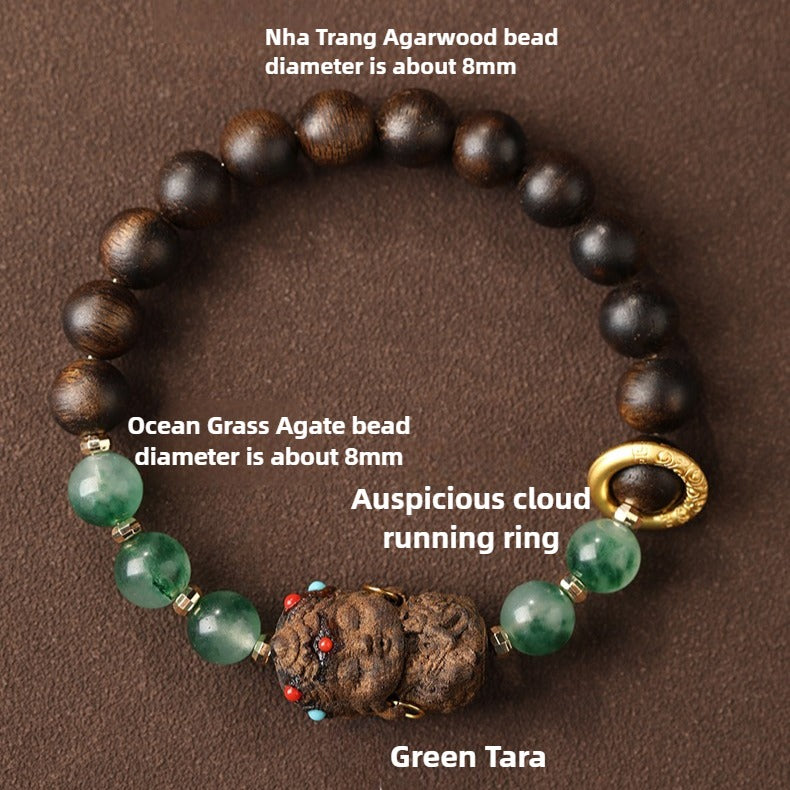 🌱 Empower Your Spirit with the Nha Trang Agarwood, Green Tara & Ocean Grass Agate Bracelet 🌱
