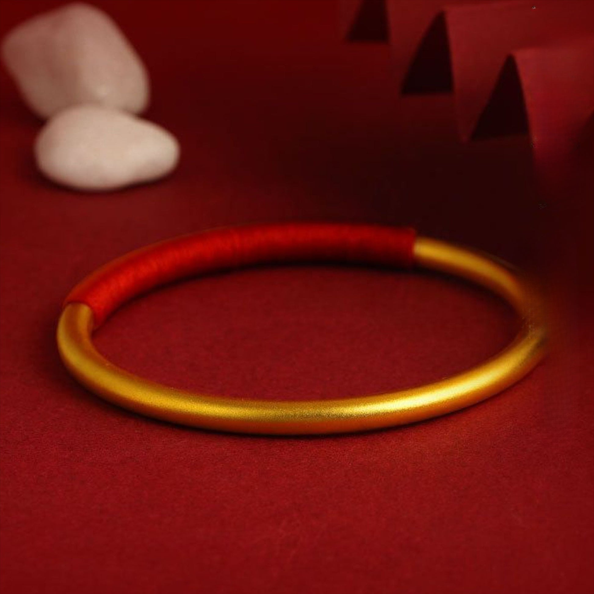 In many cultures, red thread is believed to ward off negativity, attract good fortune, and symbolize strong bonds. By wrapping half of the bangle with hand-tied red string, this design creates a striking balance between strength and spirituality. The open-ended design allows for easy adjustment, making it suitable for daily wear and perfect for gifting.