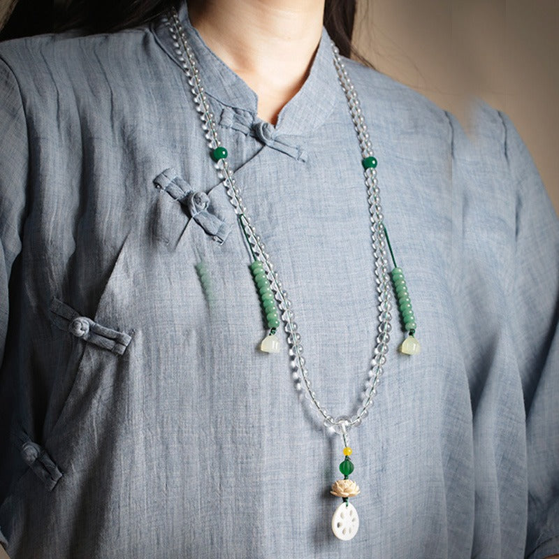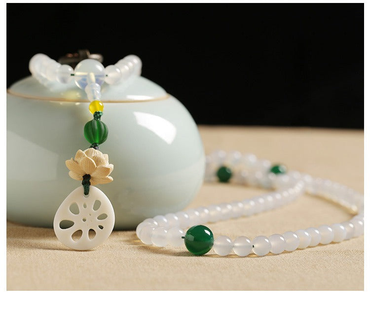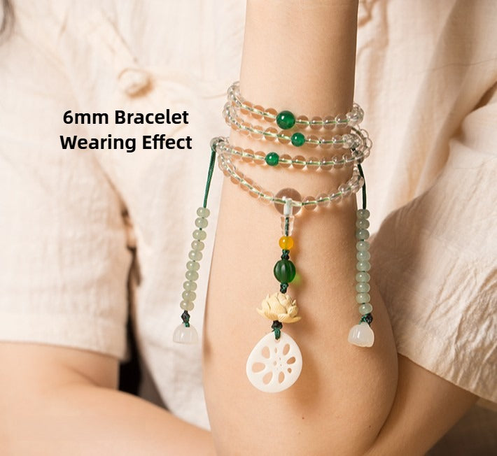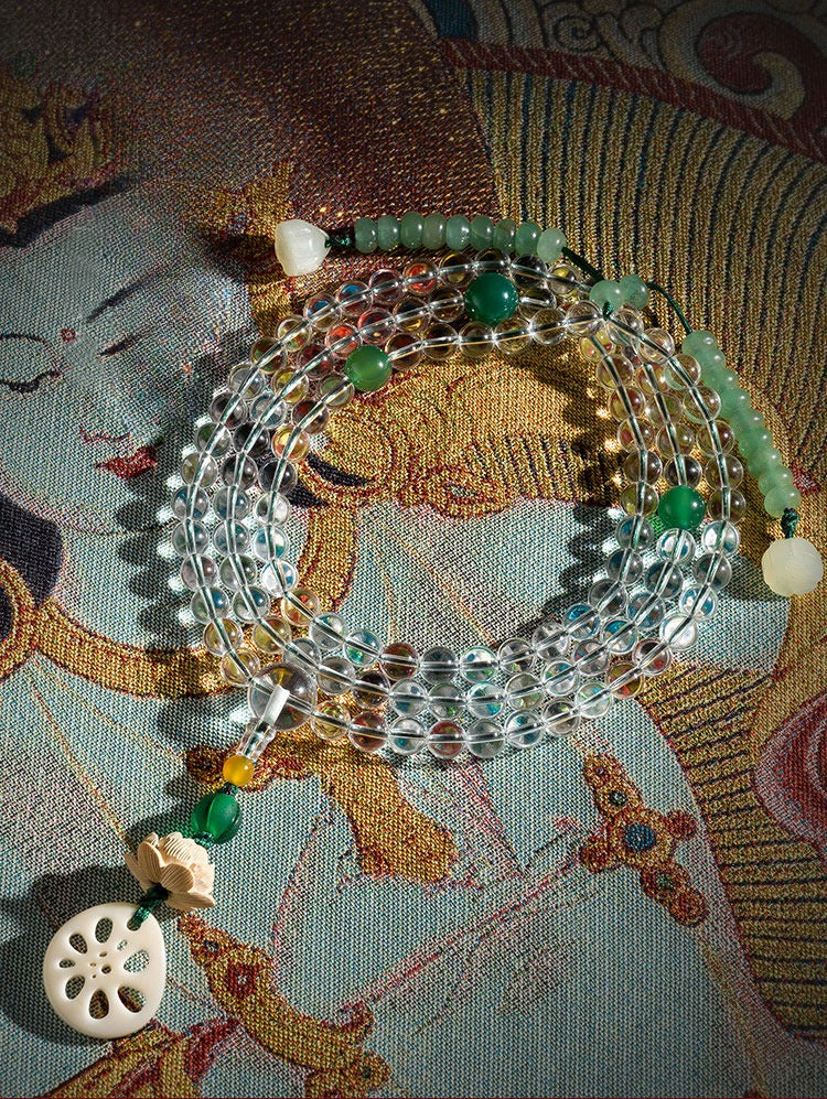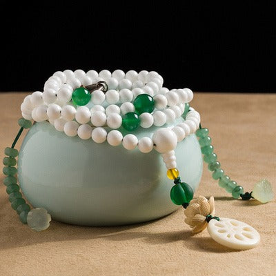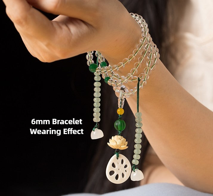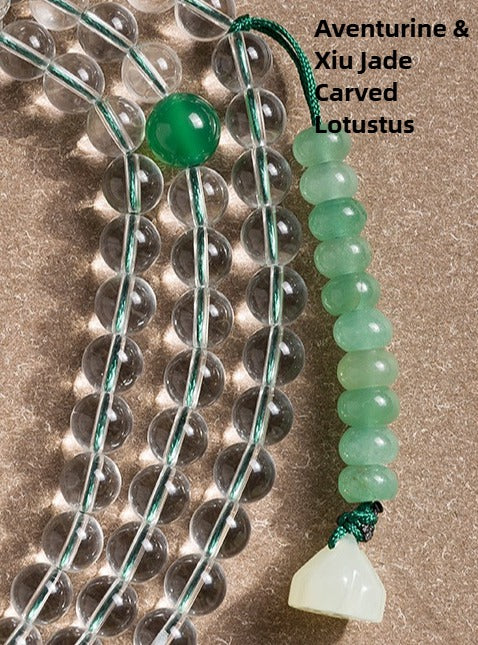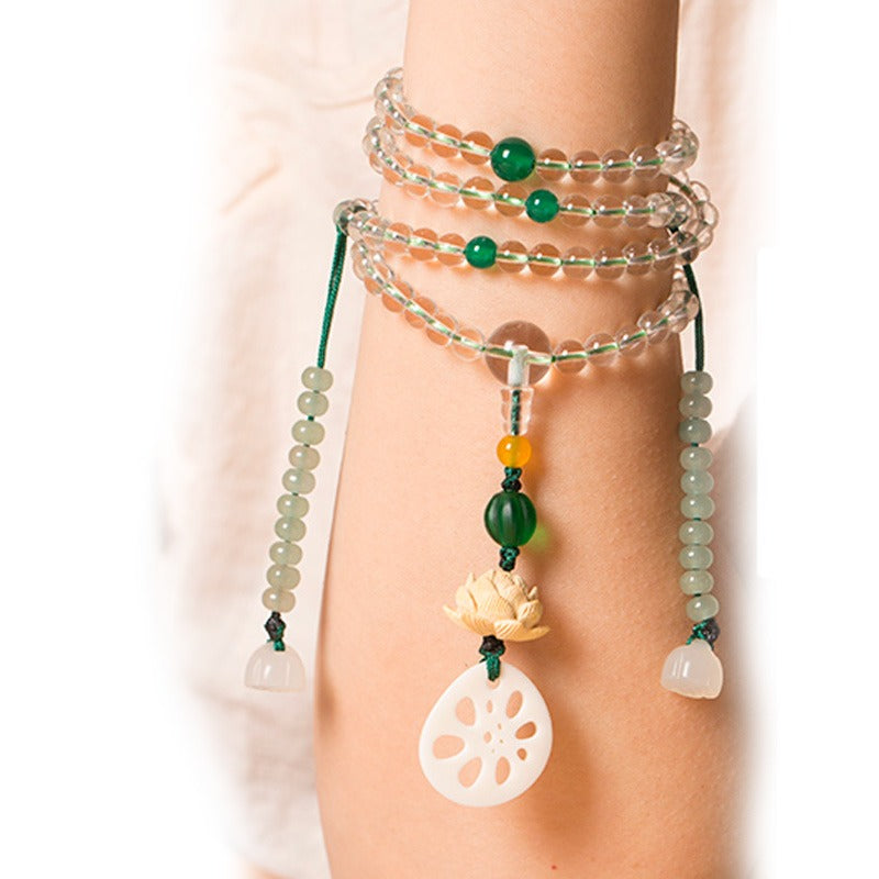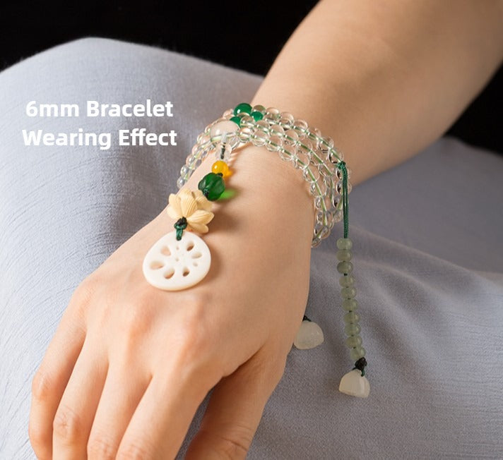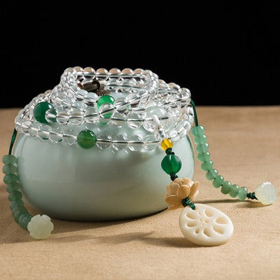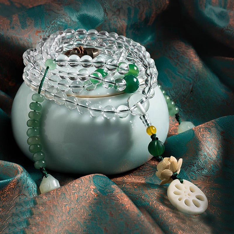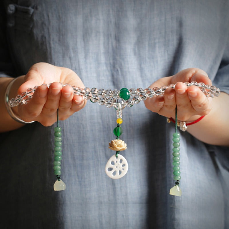 108 Mala Beads Natural Clear Quartz White Agate White Shell Lotus Quadruple Wrap Protection Bracelet