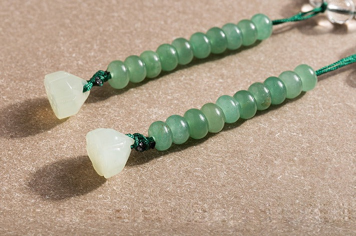 Yellow Boxwood Lotus and Green Agate Spacer Beads: The yellow boxwood lotus symbolizes purity, spiritual growth, and the blooming of enlightenment, while the green agate spacers promote emotional balance and harmony. These elements work together to enhance your meditation practice, offering both spiritual and emotional healing. 🌱