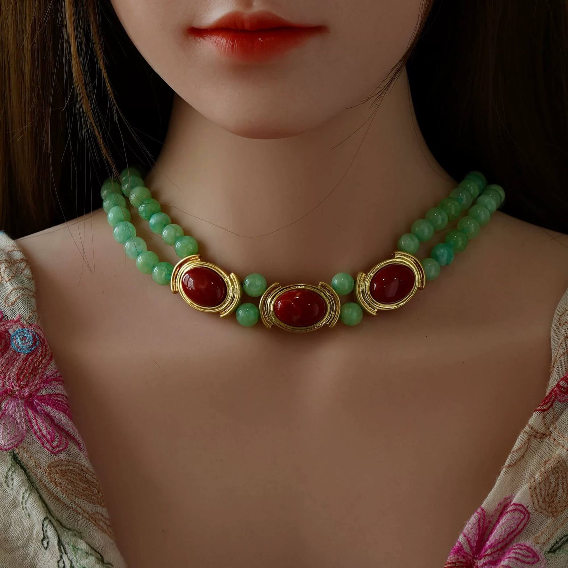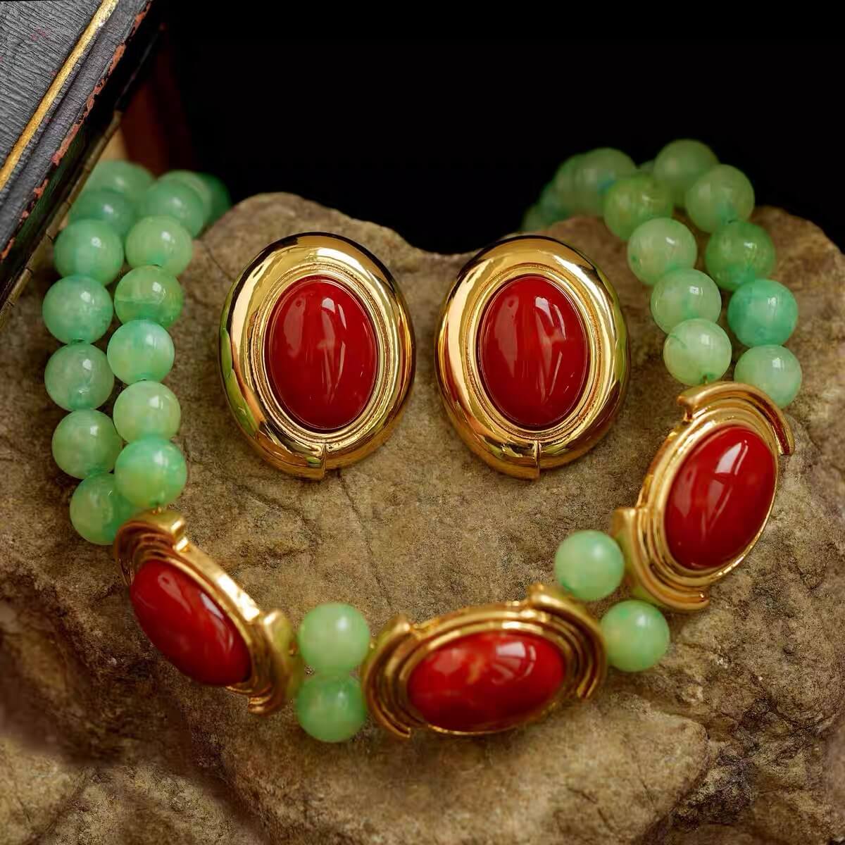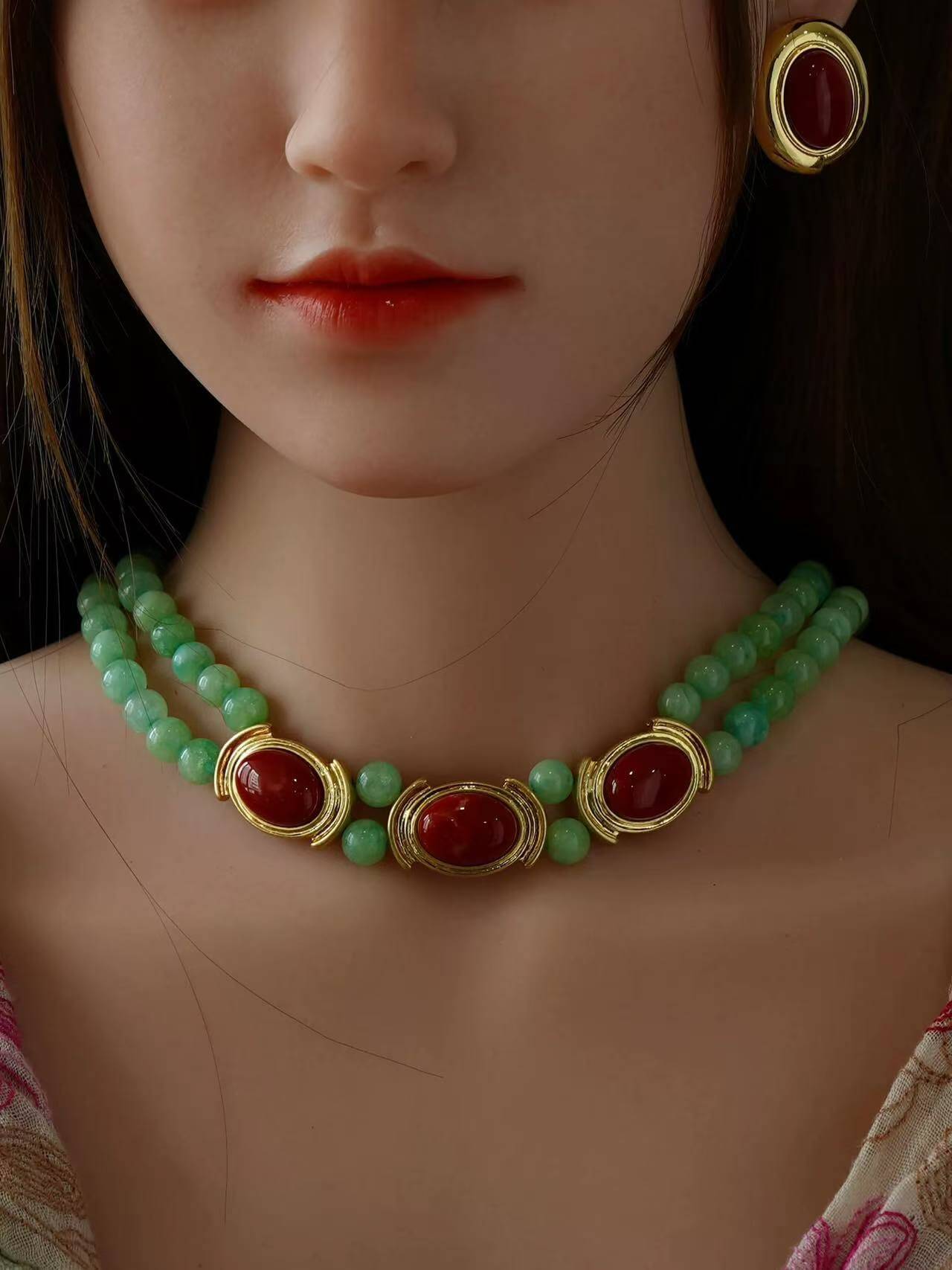 This is a jewelry set that uses agate as a medium to convey the power of love and hope. It transforms the warm color and texture of agate, a gift of the earth, into a gentle guardianship around the neck and ears, symbolizing the warmth of love and the light of hope.