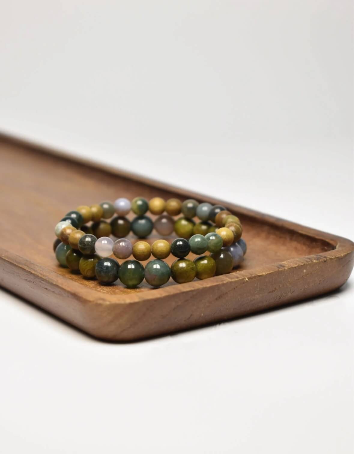 Agate Green Sandalwood Bracelet Set -Healthy-Calming