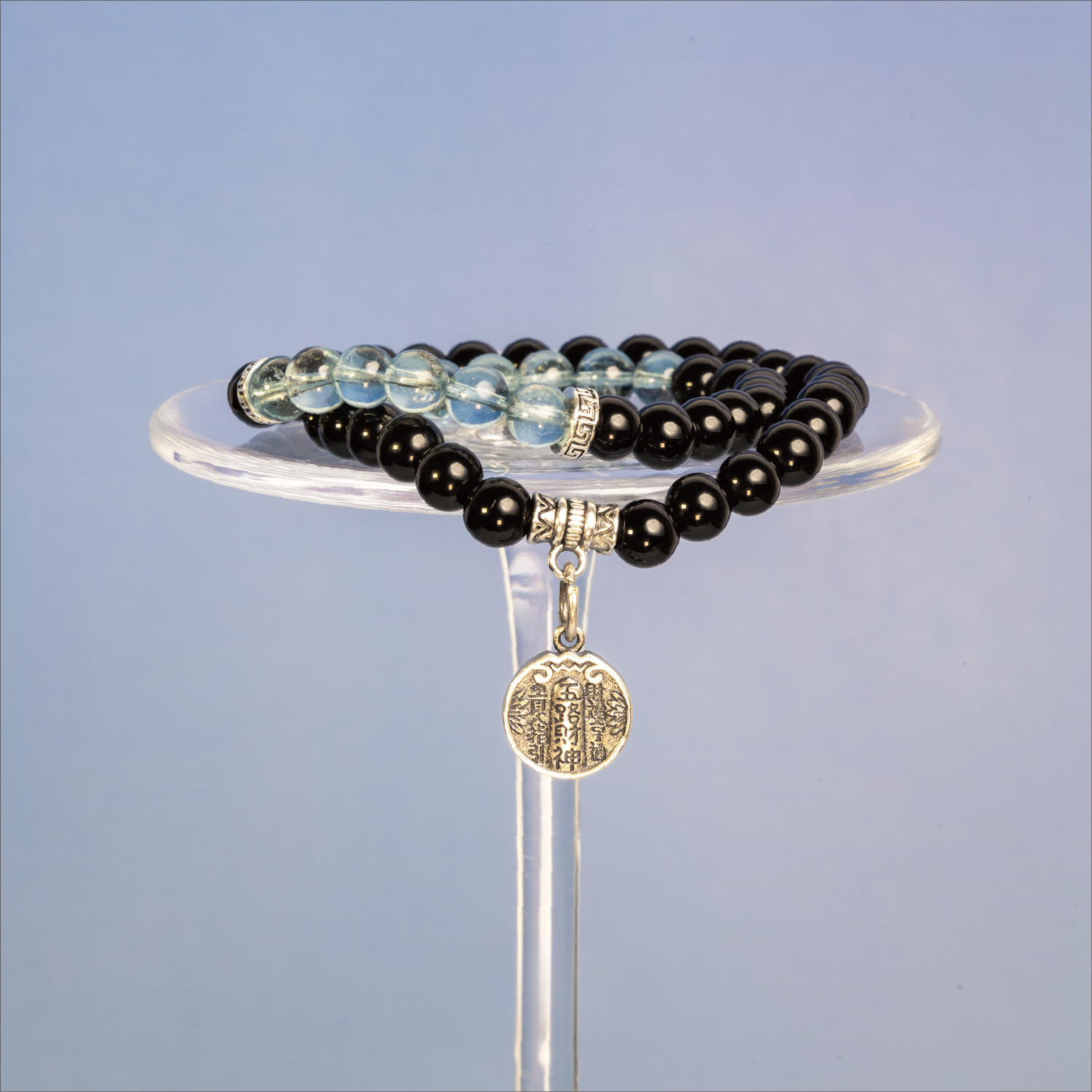 Unlock Abundance and Prosperity with the Aquamarine Black Obsidian Crystal Five Paths God of Wealth Bracelet