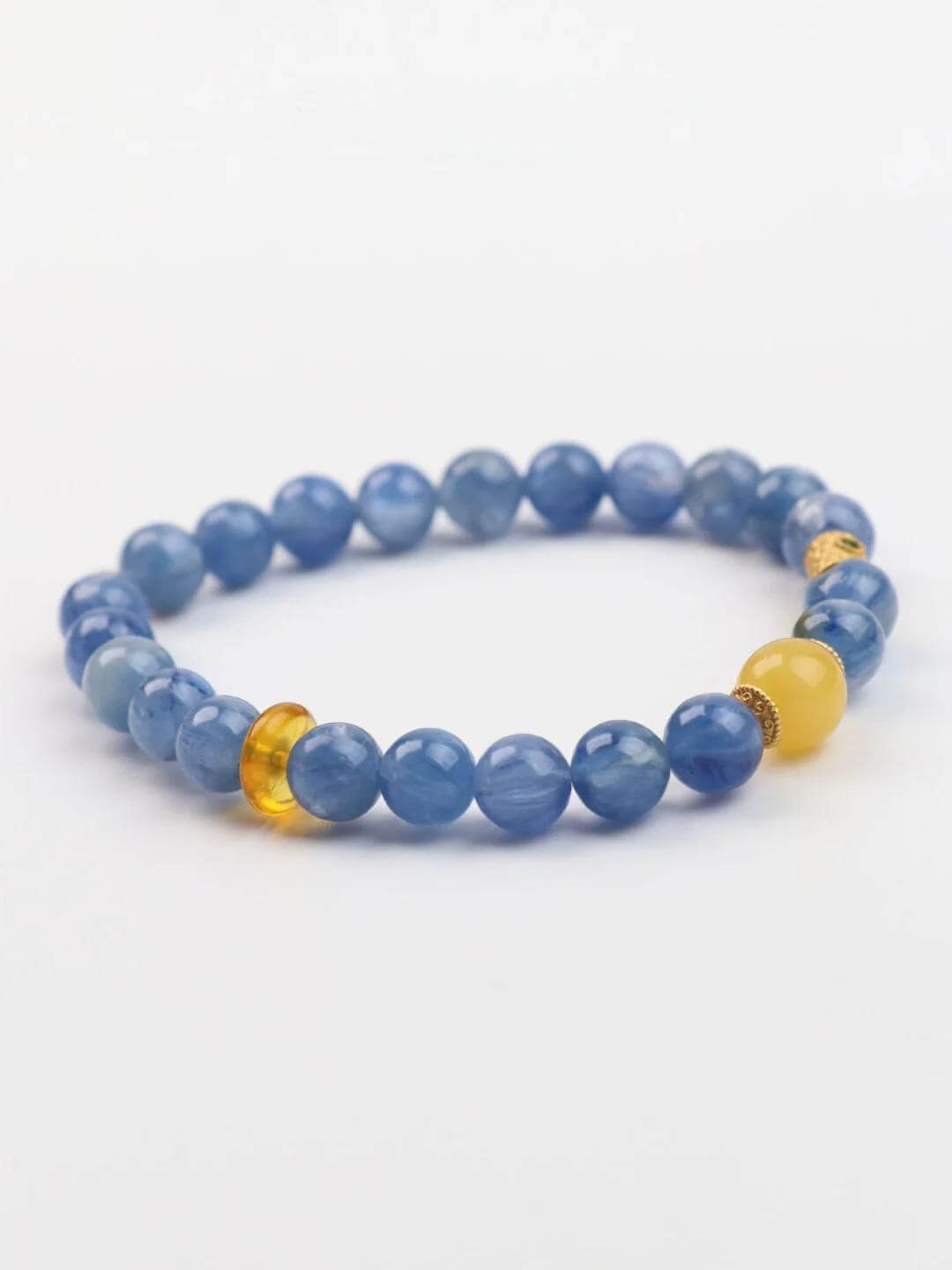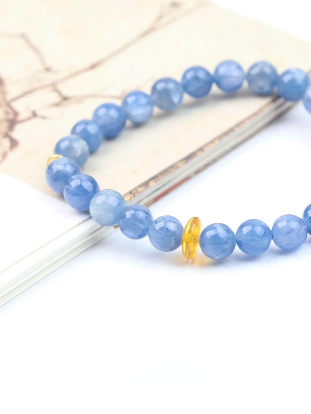 Kyanite corresponds to the throat chakra. Wearing it on your wrist can help balance the energy of the throat chakra, enhance your ability to express yourself, and make your communication smoother.Place it on your nightstand or under your pillow to benefit from its healing properties while you sleep. Remember, Bracelet is here to help you break free and move forward.