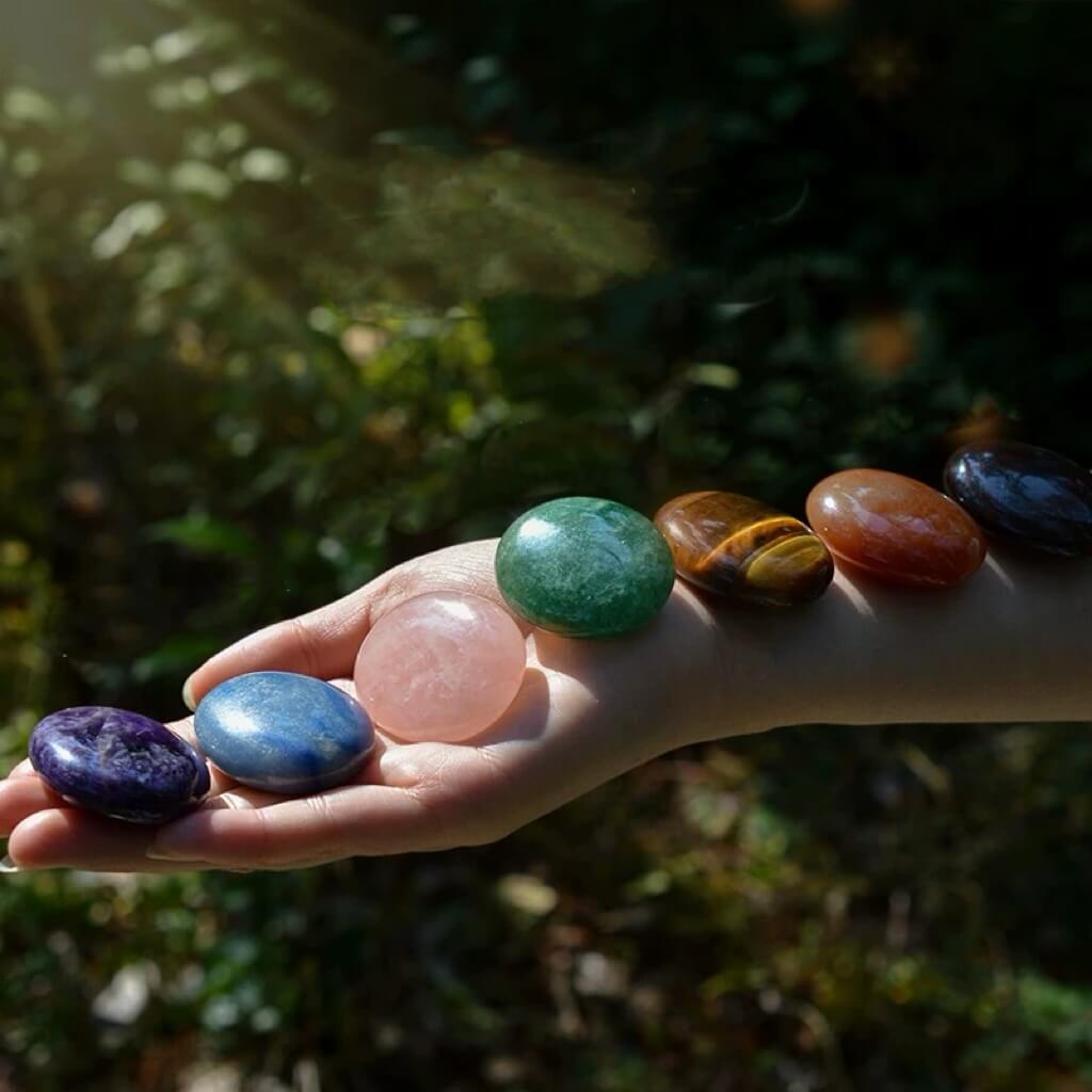 • Includes: Single-pointed Crystal, Amethyst, Blue Aventurine, Rose Quartz, Green Strawberry Quartz, Yellow Tiger's Eye, Orange Aventurine, Red Jasper, Hematite*2
