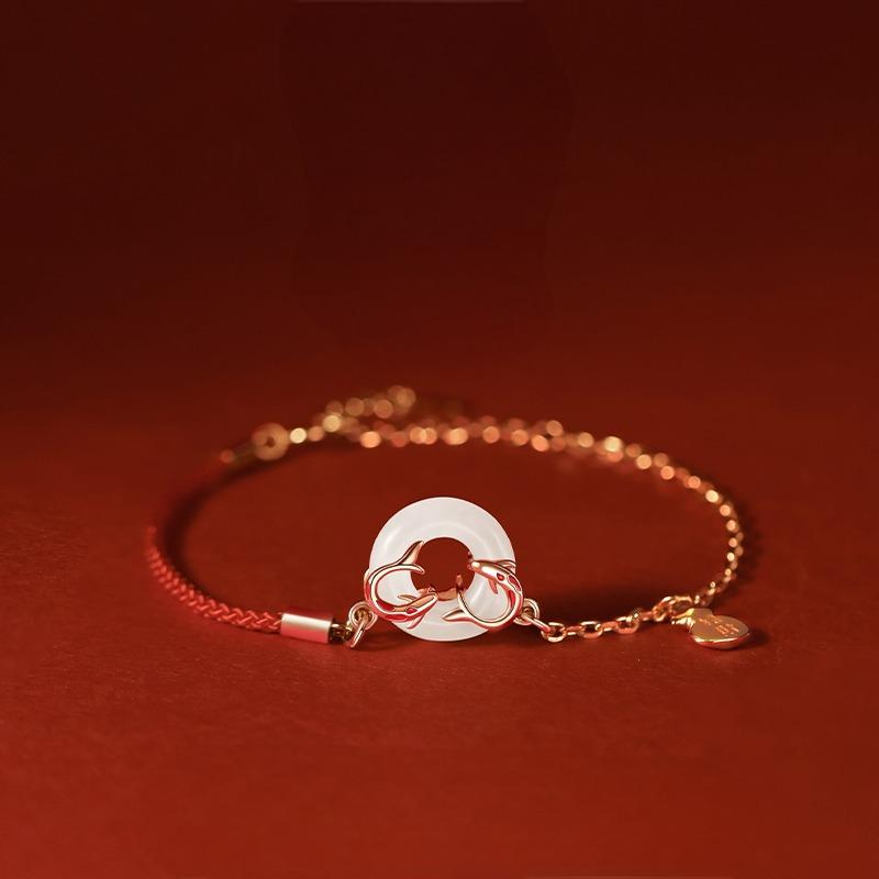 Embrace the soothing energy and cultural significance of this 925 sterling silver Koi Fish bracelet, featuring a Hetian jade peace buckle. A stunning piece that combines both beauty and meaning, this bracelet is not just a piece of jewelry but a symbol of luck, prosperity, and protection.