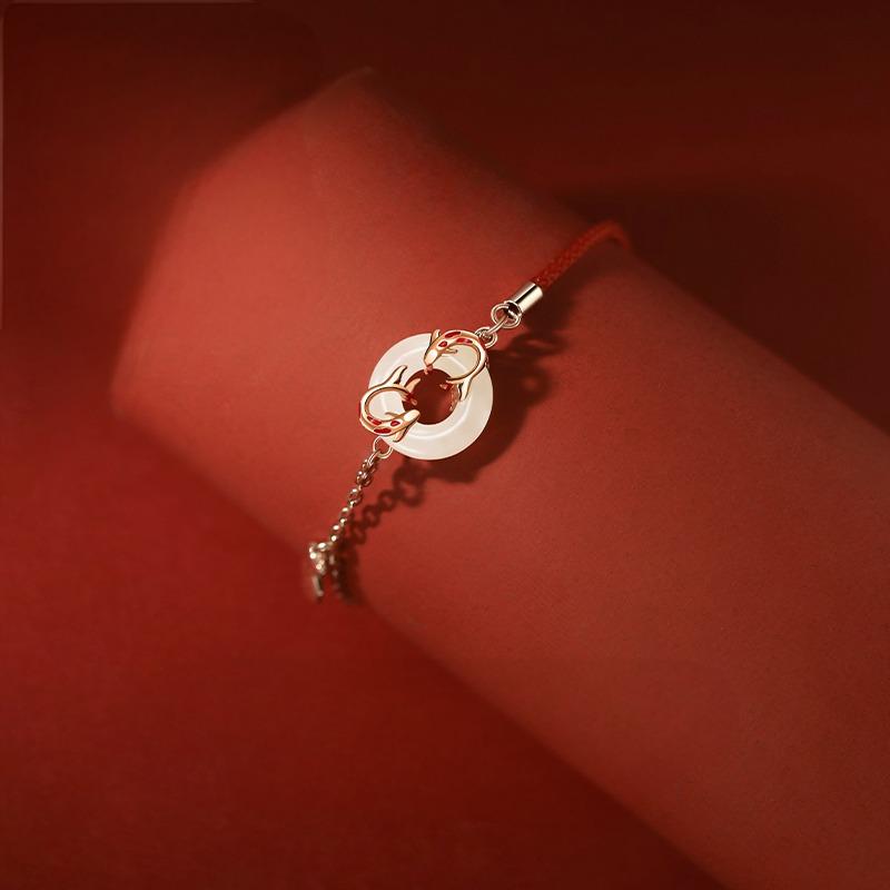 The Hetian jade peace buckle at the center of the bracelet is a timeless symbol of peace and protection. Known as one of the most treasured jades in Chinese history, Hetian jade is believed to have healing properties, offering calmness, balance, and protection to the wearer. The peace buckle shape also represents protection from negative energies and promotes inner peace, making it an ideal companion for daily meditation or grounding practices.