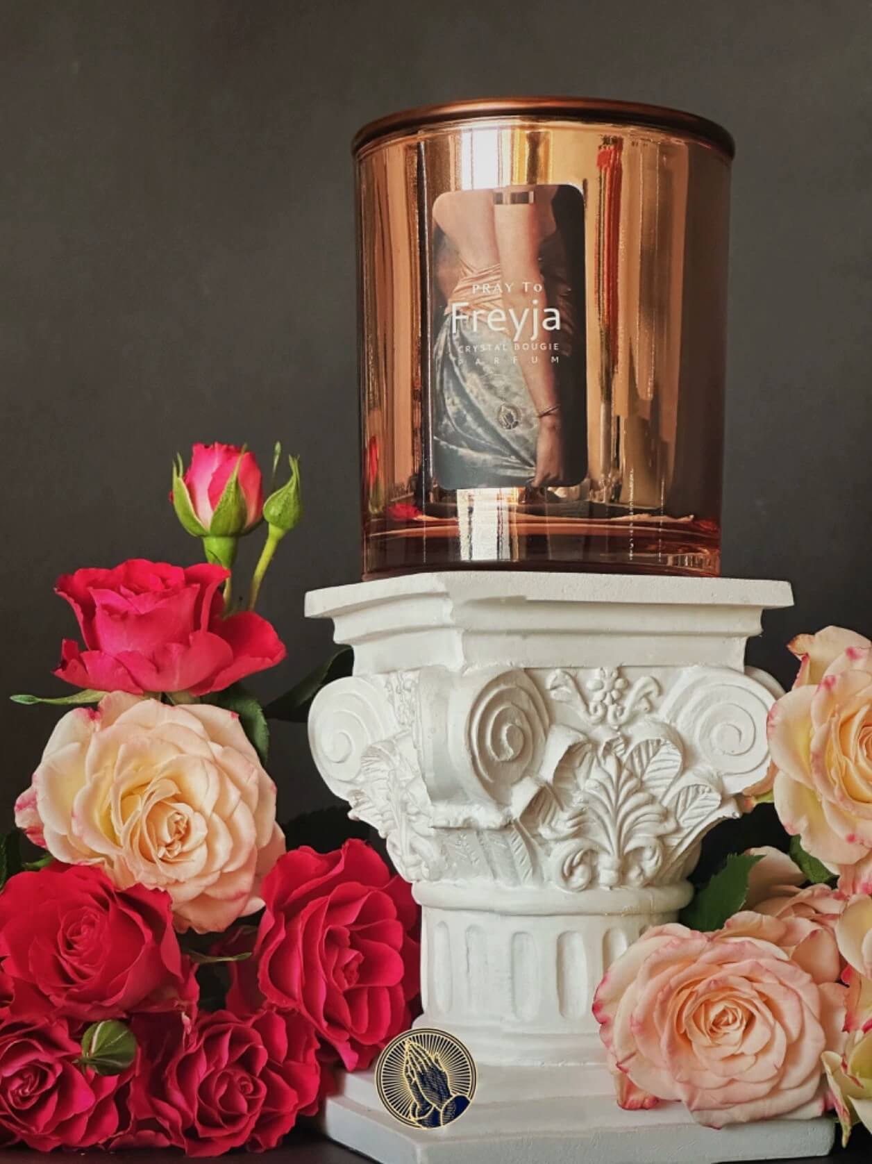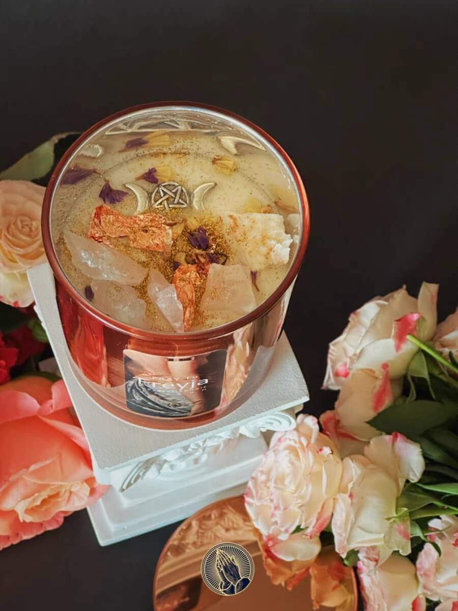 Goddess Freyja Crystal Essential Oil Floral Fragrance Candle - Feminine Charm & Beauty